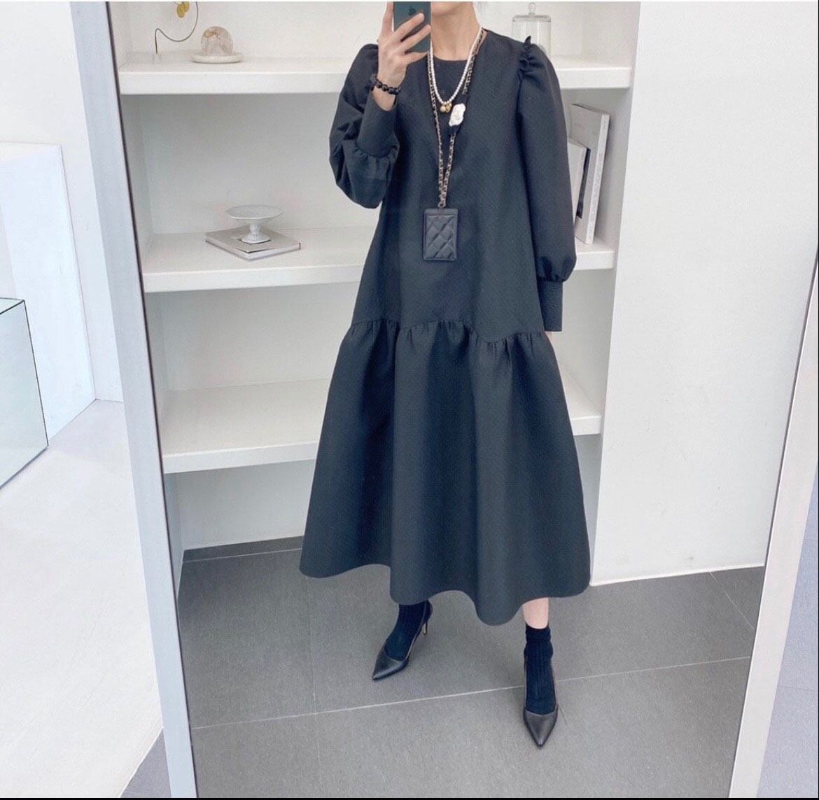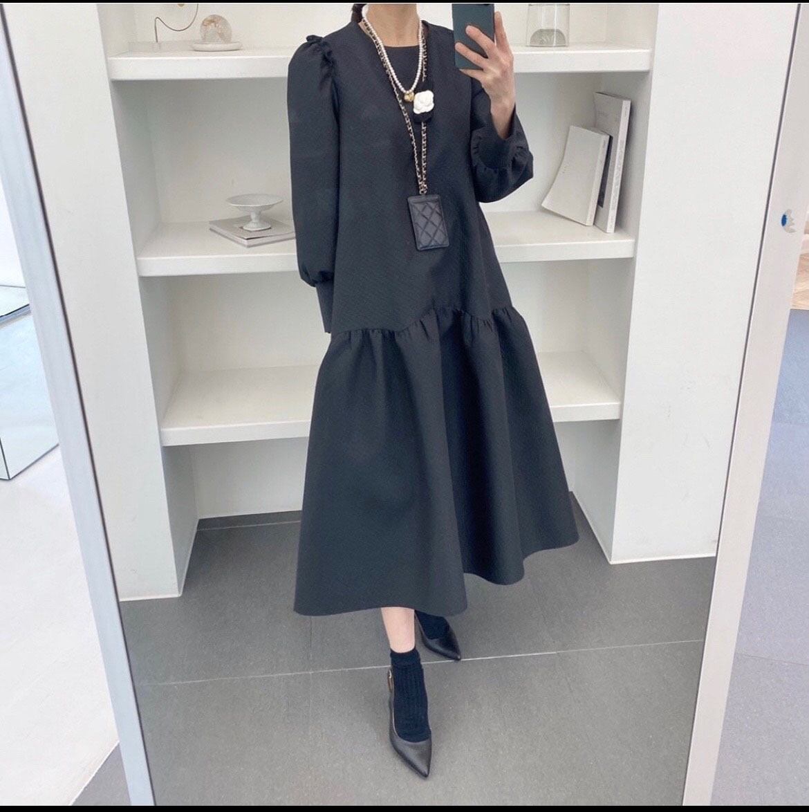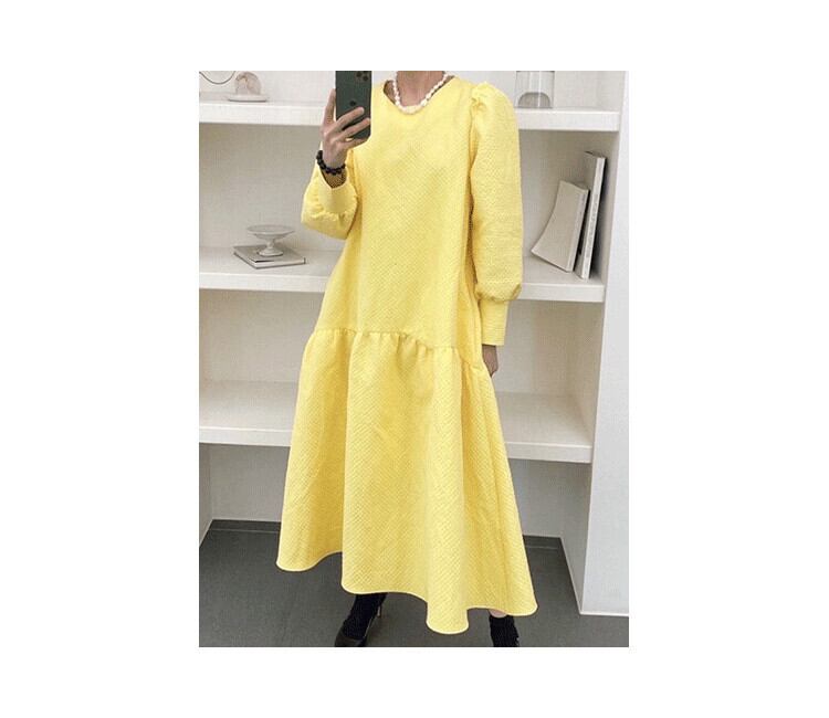 スプリングイエローホワイトラウンドネックルーズロングドレス レディース 春物 Oネック 7/20 mi4635473399628