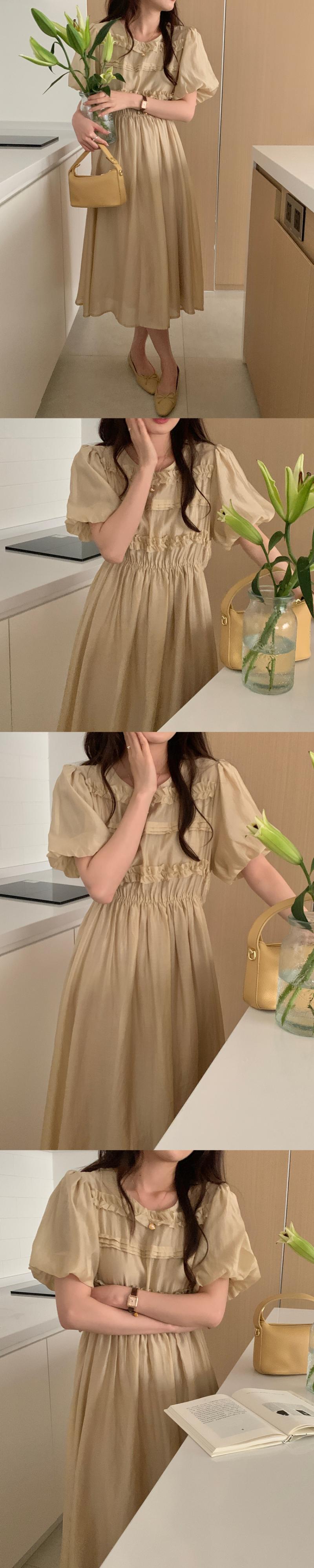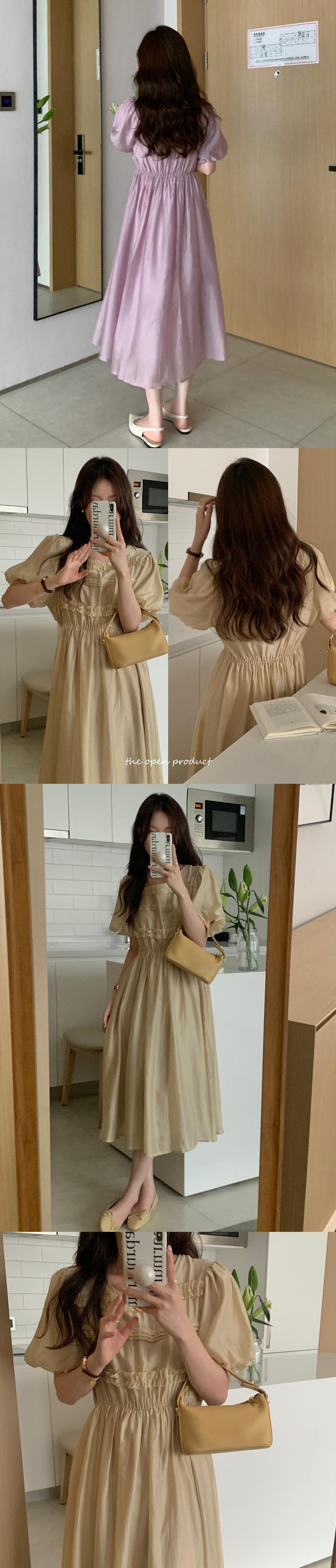 サマーラウンドネックウェスト薄手スリーブドレス ロングスカート ランタンスリーブ 夏物 Oネック 7/20 mi4660505556911