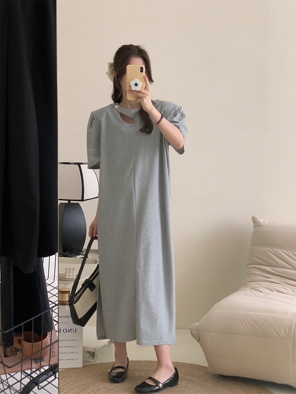 サマーホワイトラウンドネックルーズカジュアルスリーブドレス ロングスカート レディース 夏物 Oネック 7/20 mi4636007784063