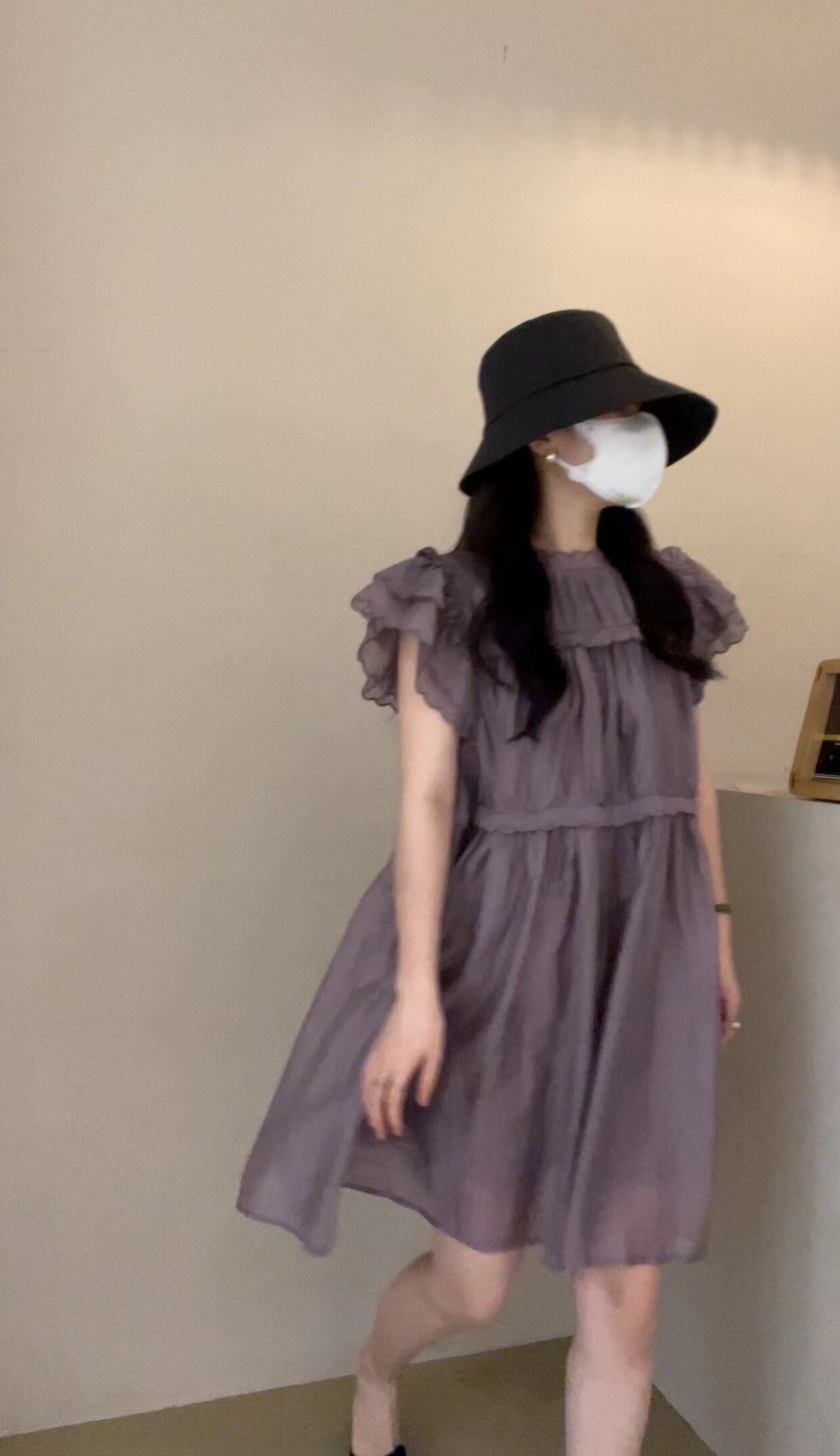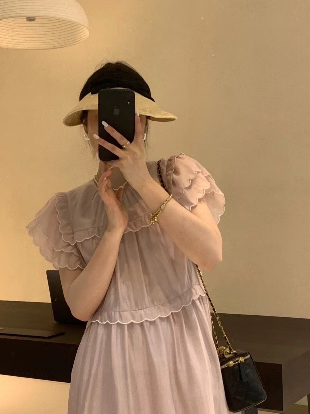 サマーラウンドネックレースウェストスリムドレス 夏物 Oネック 7/20 mi4662031448879