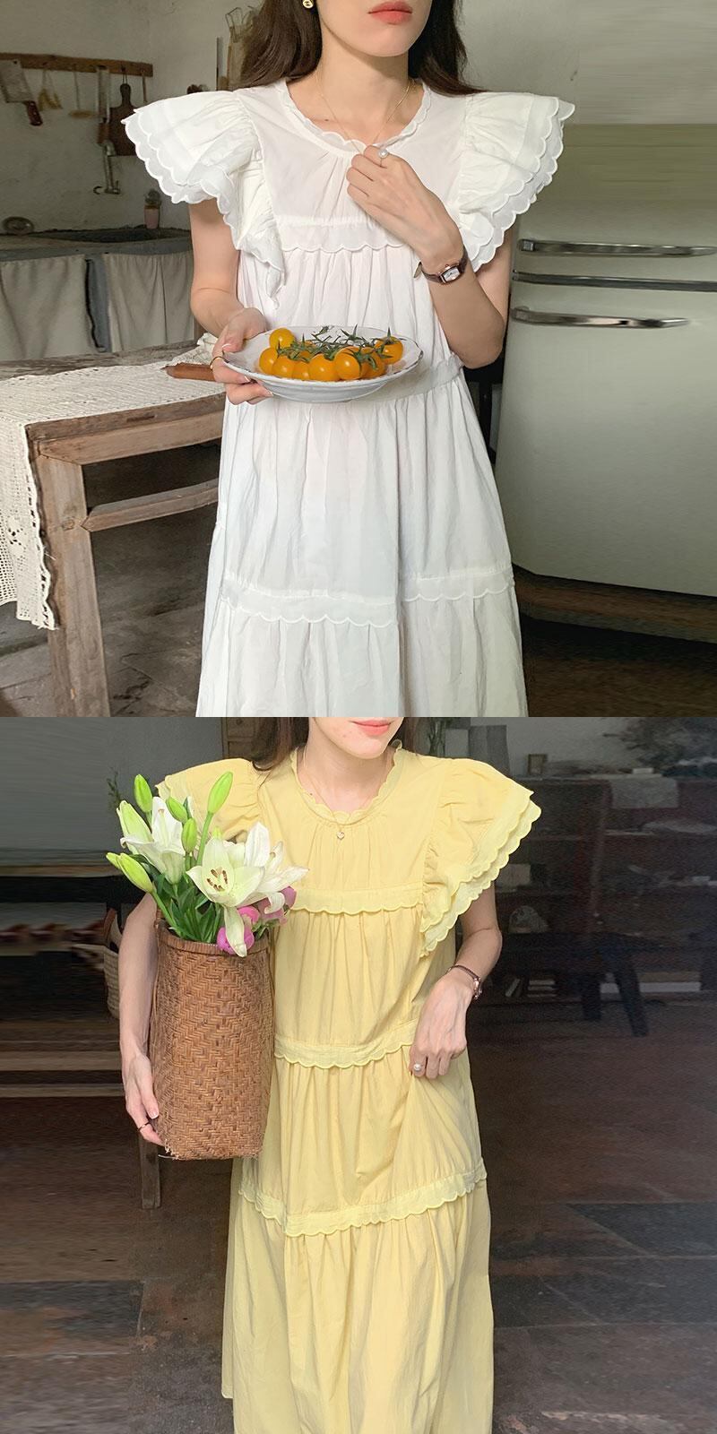 サマーイエローラウンドネックサイドスリーブドレス ロングスカート レッド 夏物 Oネック ステッチ 7/20 mi4664477366916
