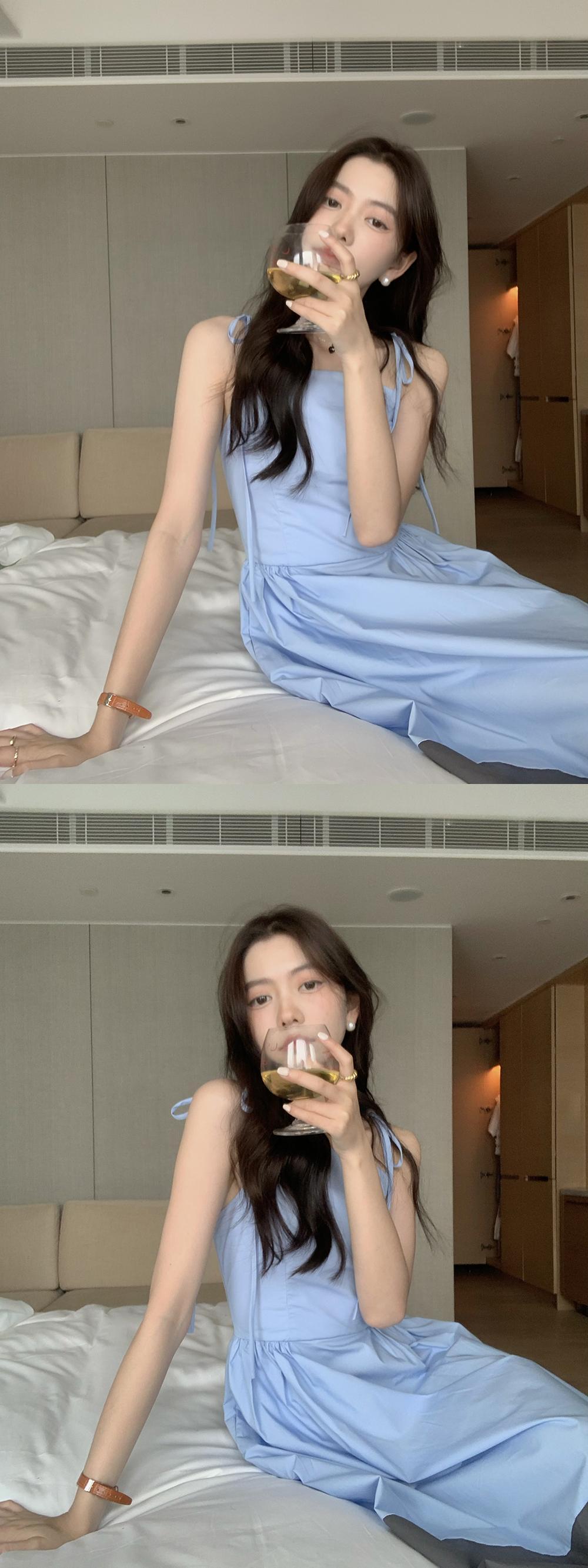 サマーリボンカラードレス ロングスカート レディース エレガント 夏物 ステッチ 7/20 mi4631314045850