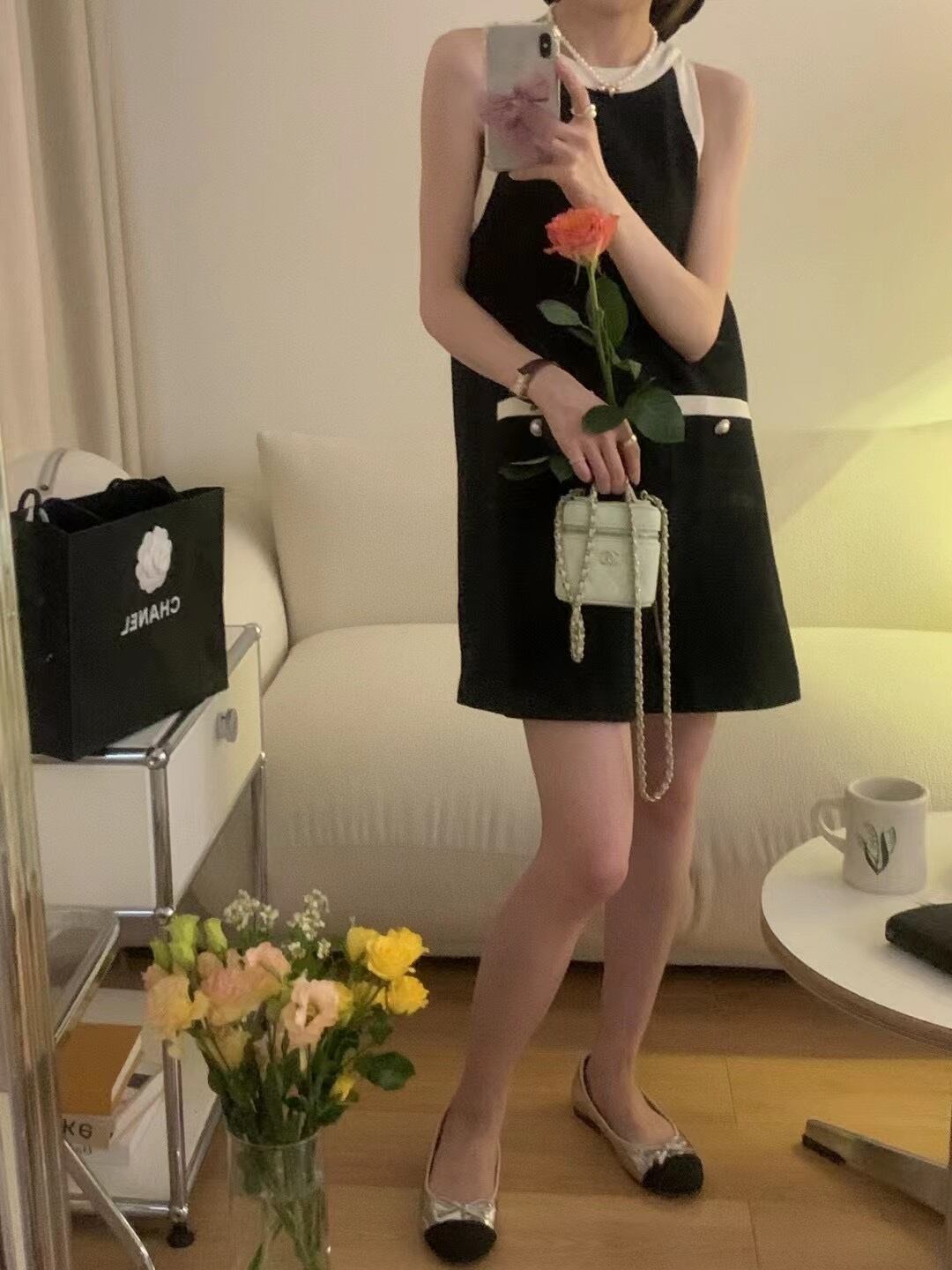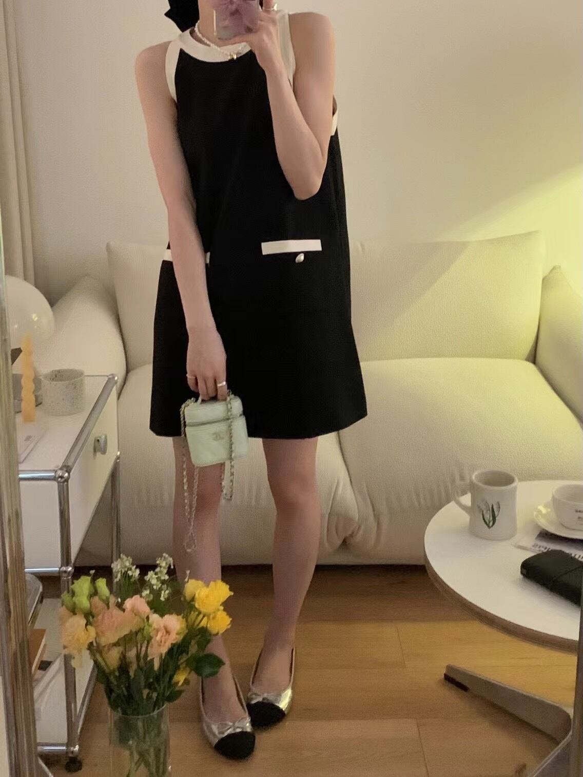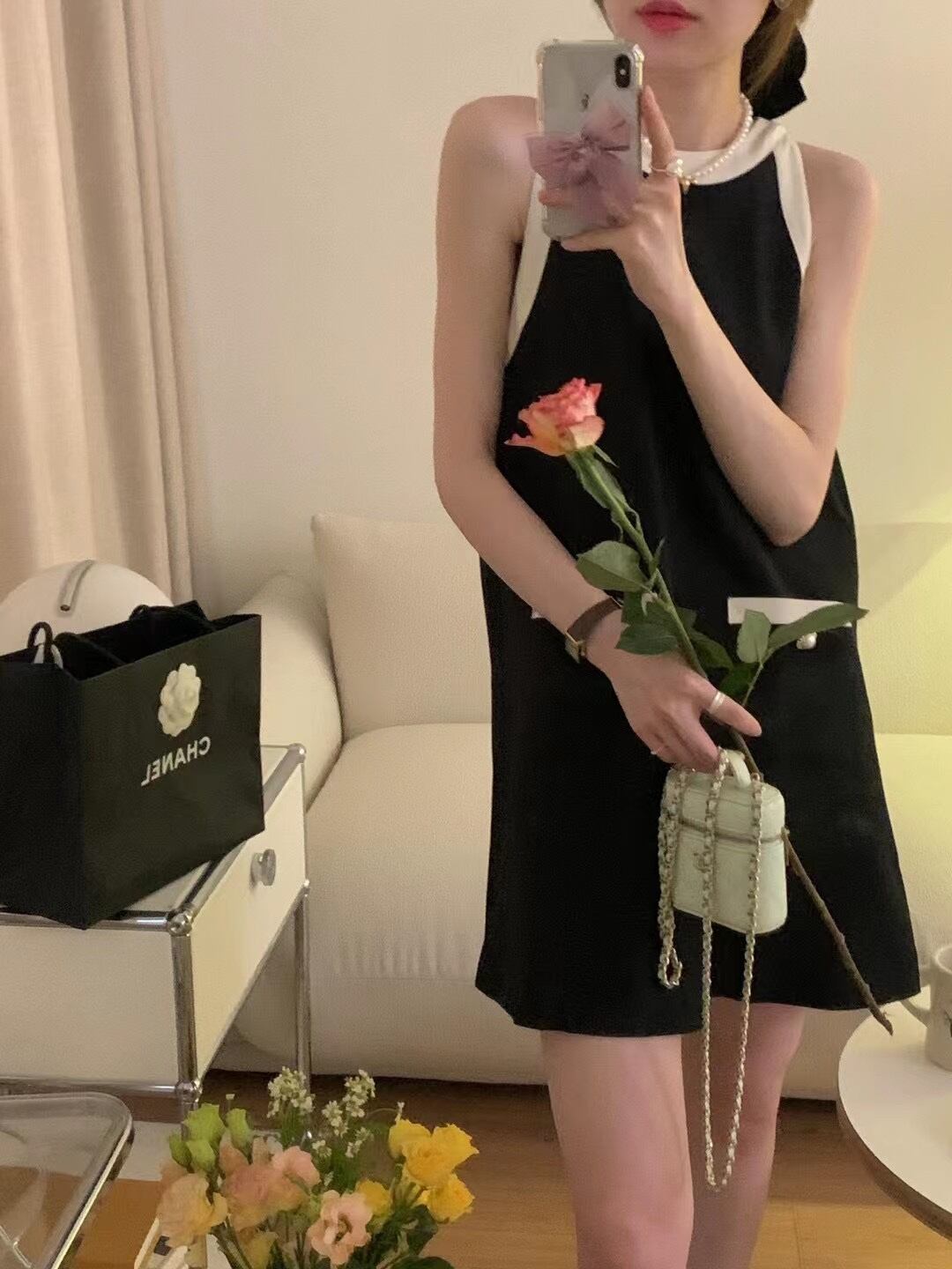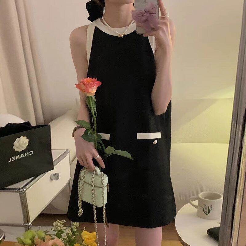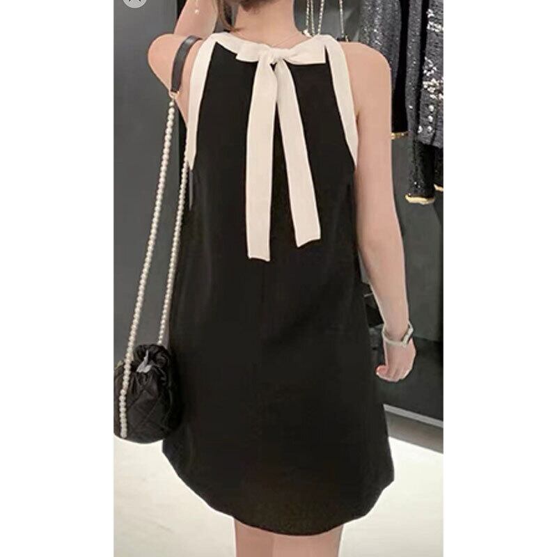 サマースタンダードラウンドネックバックリボンカラーノースリーブドレス ショートスカート レトロ 夏物 Oネック 7/20 mi4672022497629