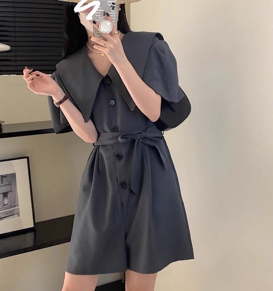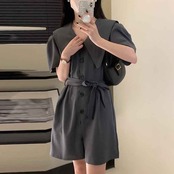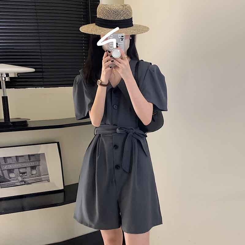 サマースタンダードスタイルウェスト薄手スリーブジャンプスーツ オールインワン ショーツ レトロ 夏物 ブルマー 7/20 mi4698002675514