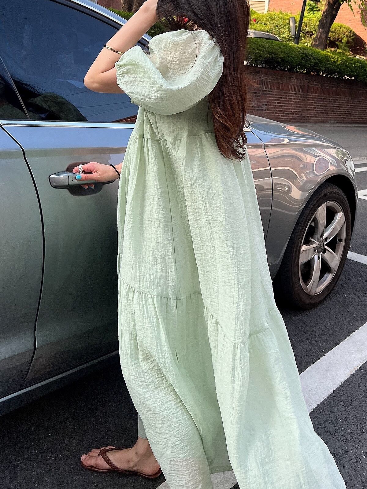サマーラウンドネックロングルーズスリーブドレス レディース レッド 大人ガーリー スウィート キュート カジュアル 夏物 Oネック 7/20 mi4651495607155