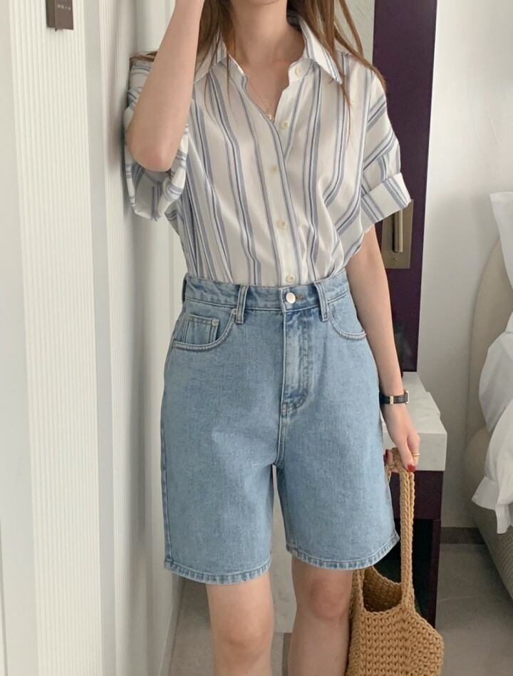 サマールーズカジュアルストライプシャツ トップス レディース 夏物 7/20 mi4615875176433