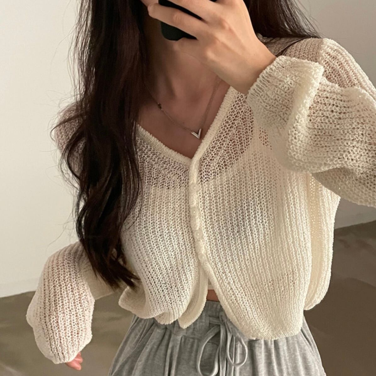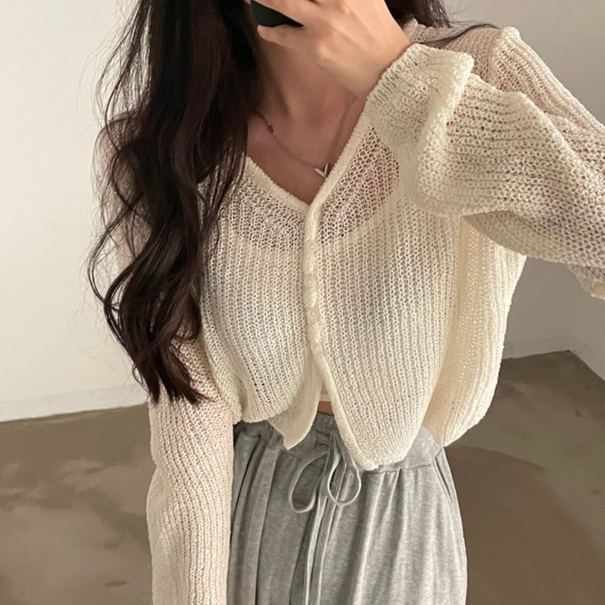 サマースタイルVネックルーズショートニットセーター レディース ロング 夏物 7/20 mi4643227840402