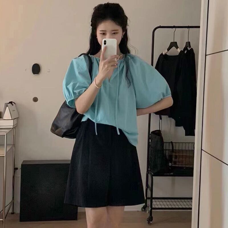 サマーラウンドネックレースルーズスリーブシャツ ハイウェストウェストカジュアルワイドレッグパンツ レディース 夏物 Oネック ワイドパンツ 7/20 mi4622342448440