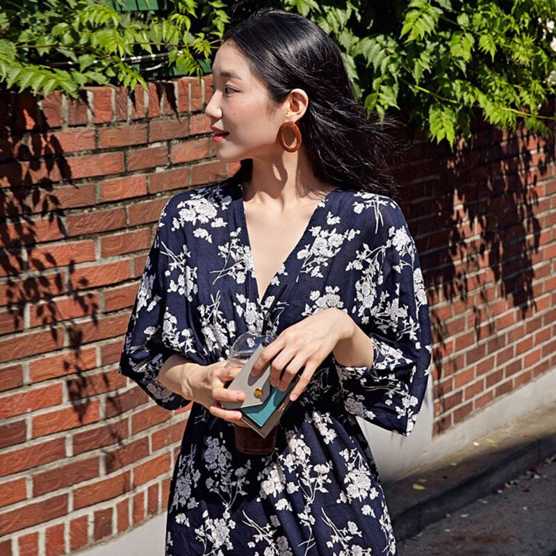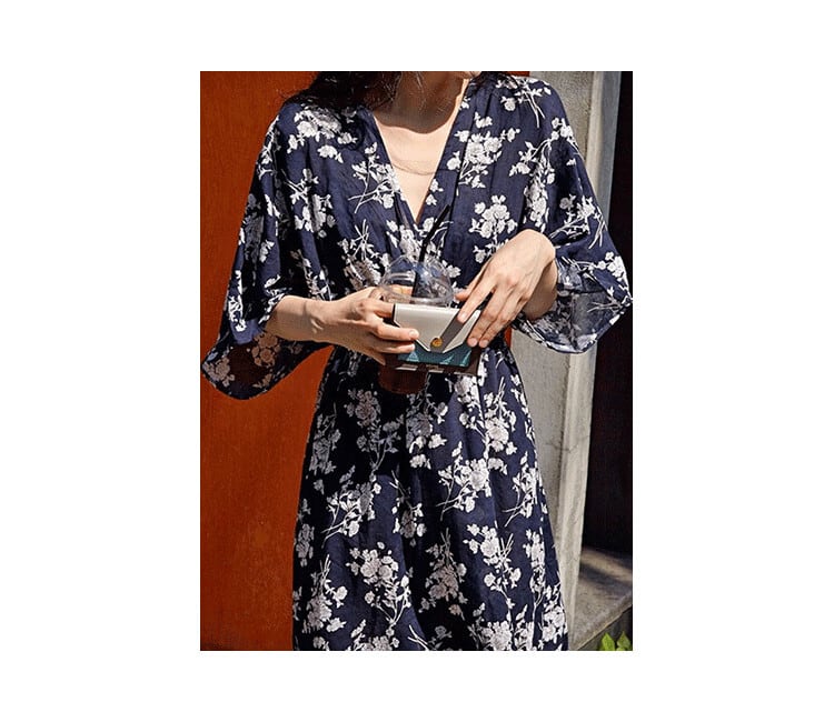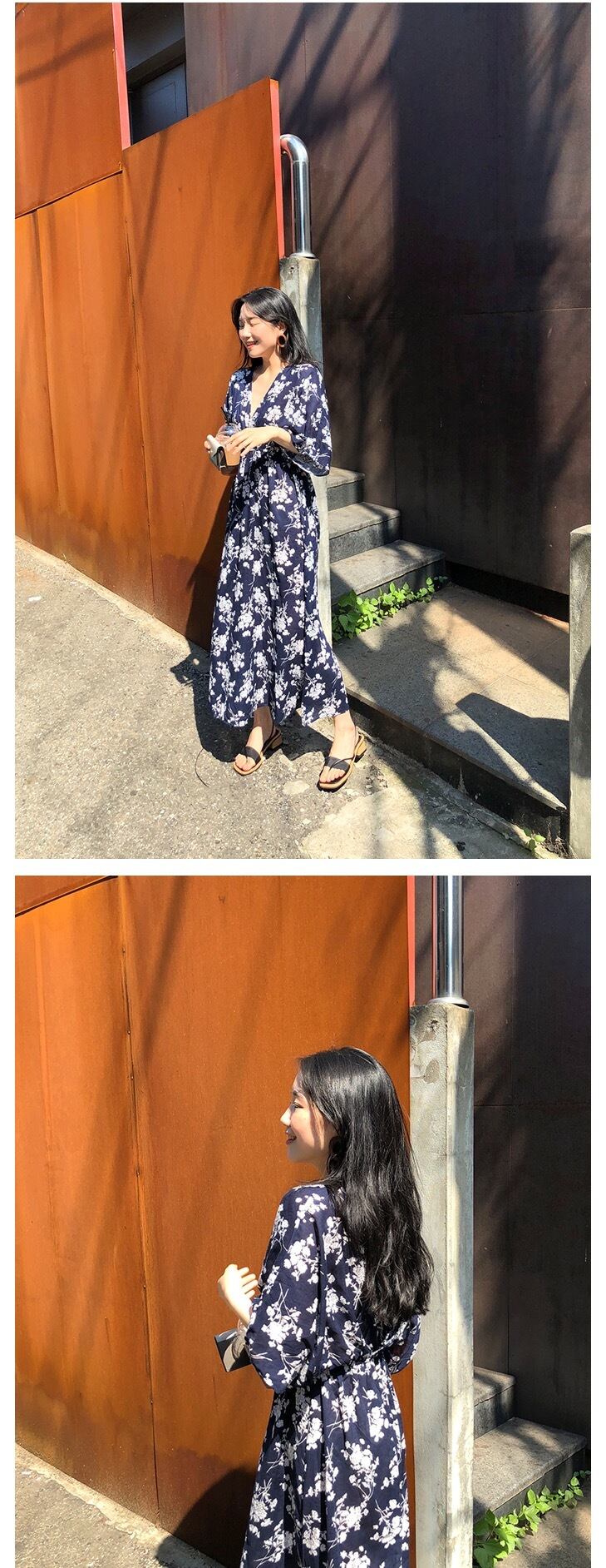Vネックウェストバックフローラルドレス レース エレガント 花柄 レースアップ 7/20 mi4669044856979