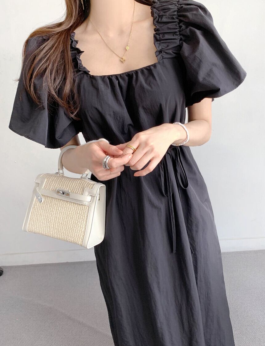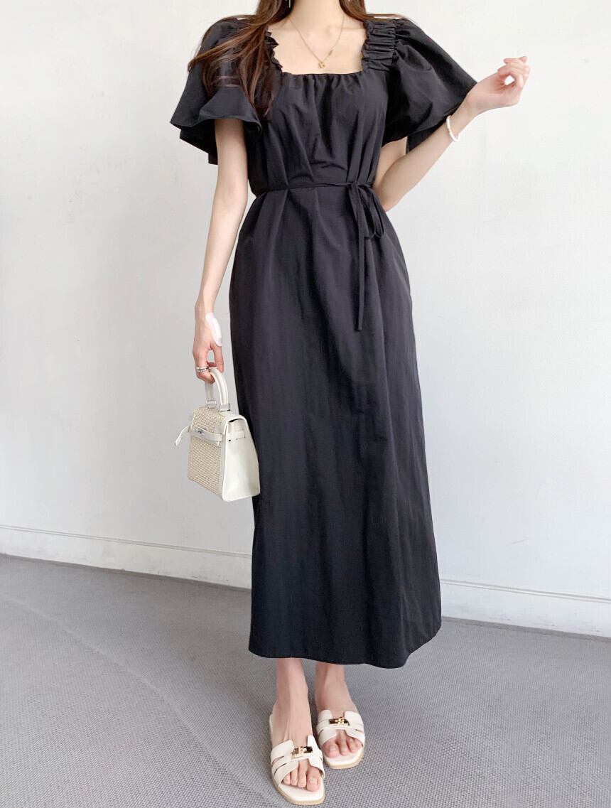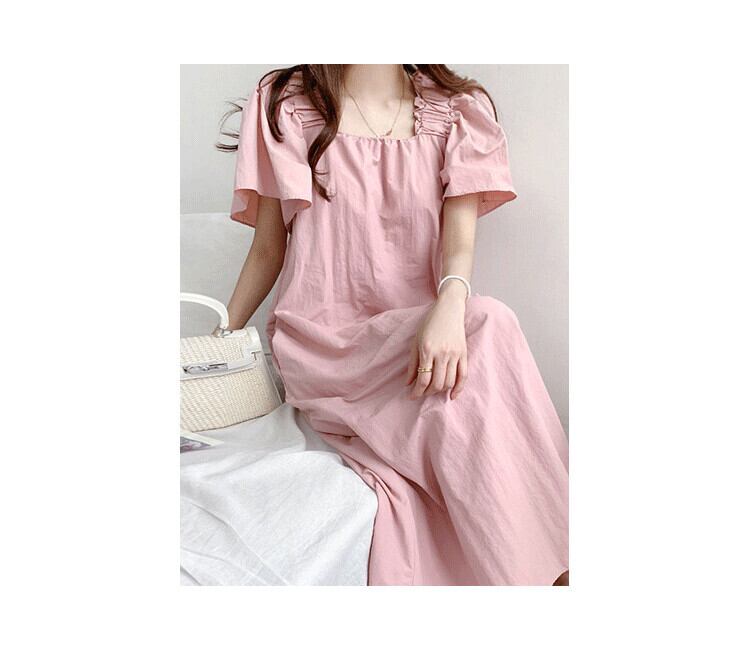 サマーカラールーズカジュアルプリーツロングドレス レディース 大人ガーリー スウィート キュート 夏物 スクウェア 7/20 mi467455536422