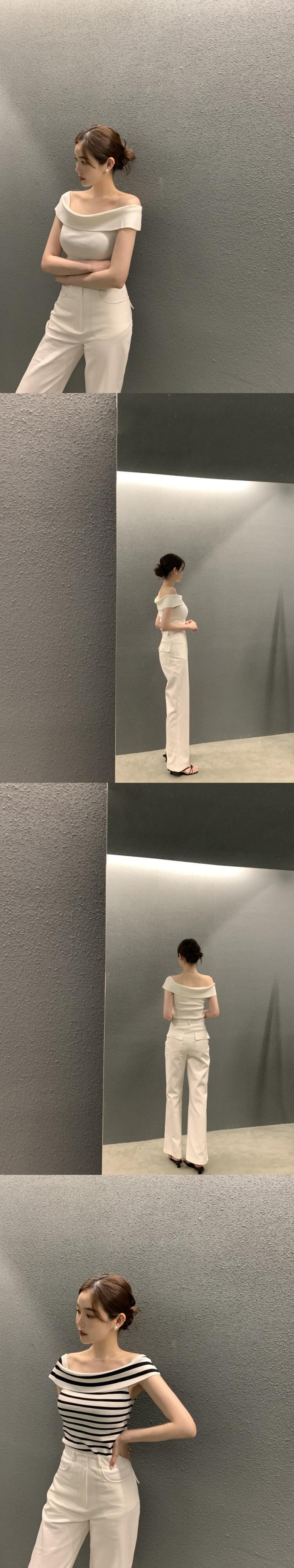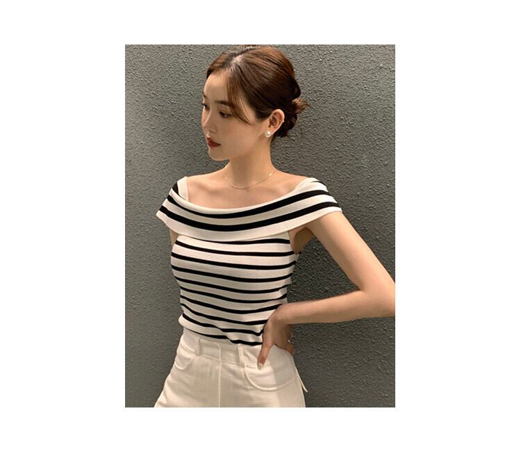 サマーカラースリムストライプニットセーター トップス レディース 夏物 7/20 mi4699807363583
