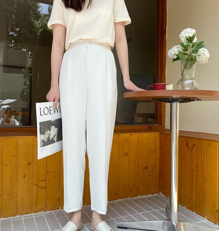 サマースタンダードハイウェストウェストボタンソリッド カラーカジュアルパンツ レディース レトロ 夏物 ソリッドカラー 7/20 mi464219247665