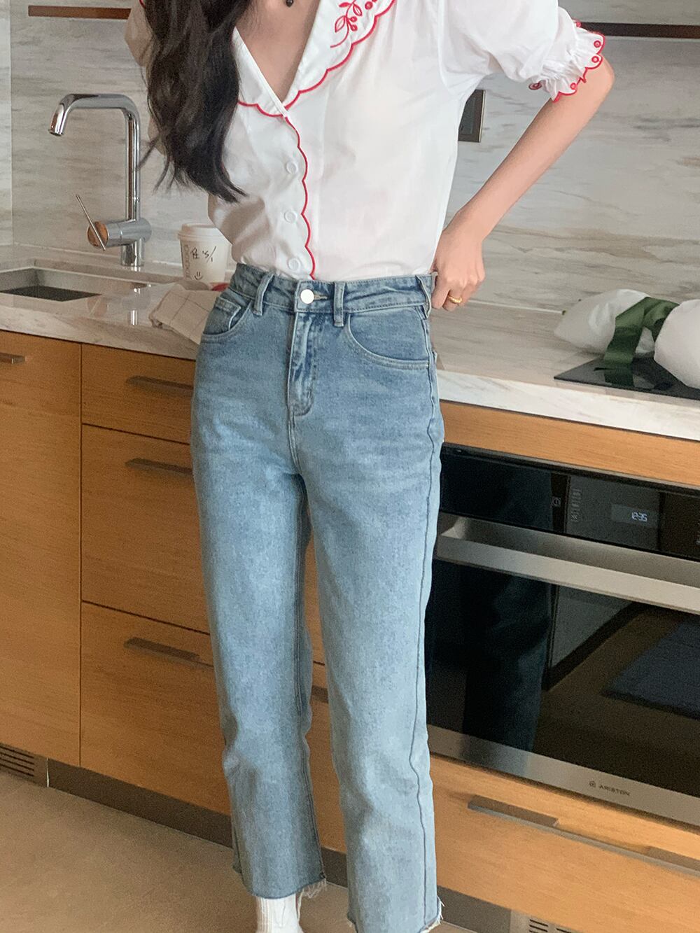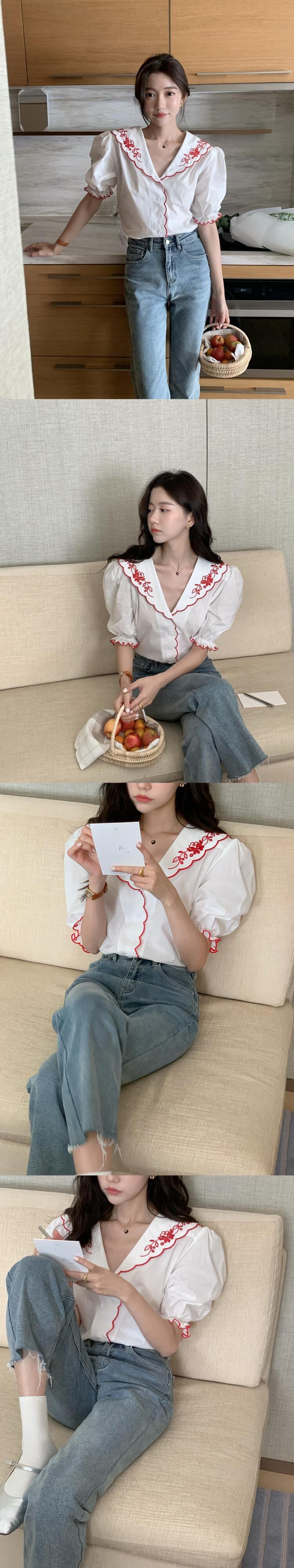 サマーネイビーカラーFlowerデザイン 刺繍シャツ レディース 大人ガーリー スウィート キュート カジュアル 夏物 フラワーデザイン ステッチ 7/20 mi469869747934