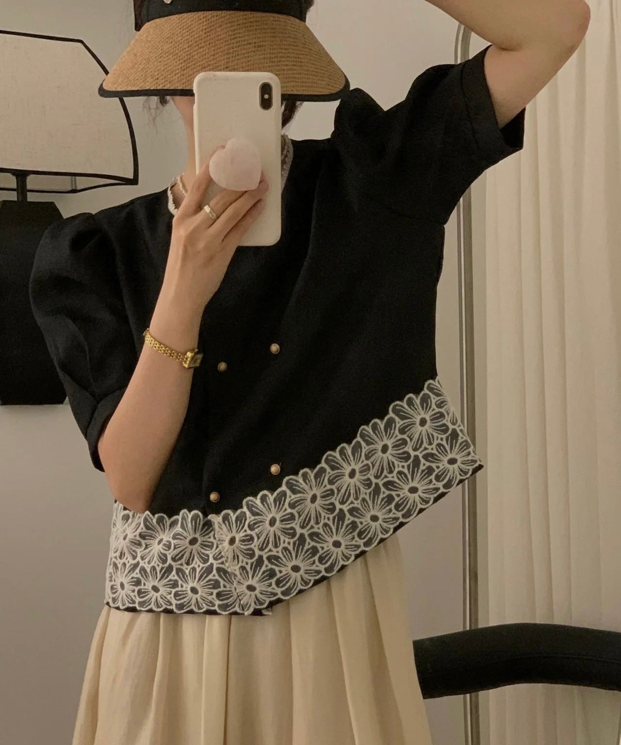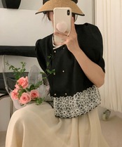 サマースタンダードラウンドネックルーズダブルブレストレースFlowerデザイン スリーブシャツ レトロ 夏物 Oネック フラワーデザイン ステッチ 7/20 mi4622475780368