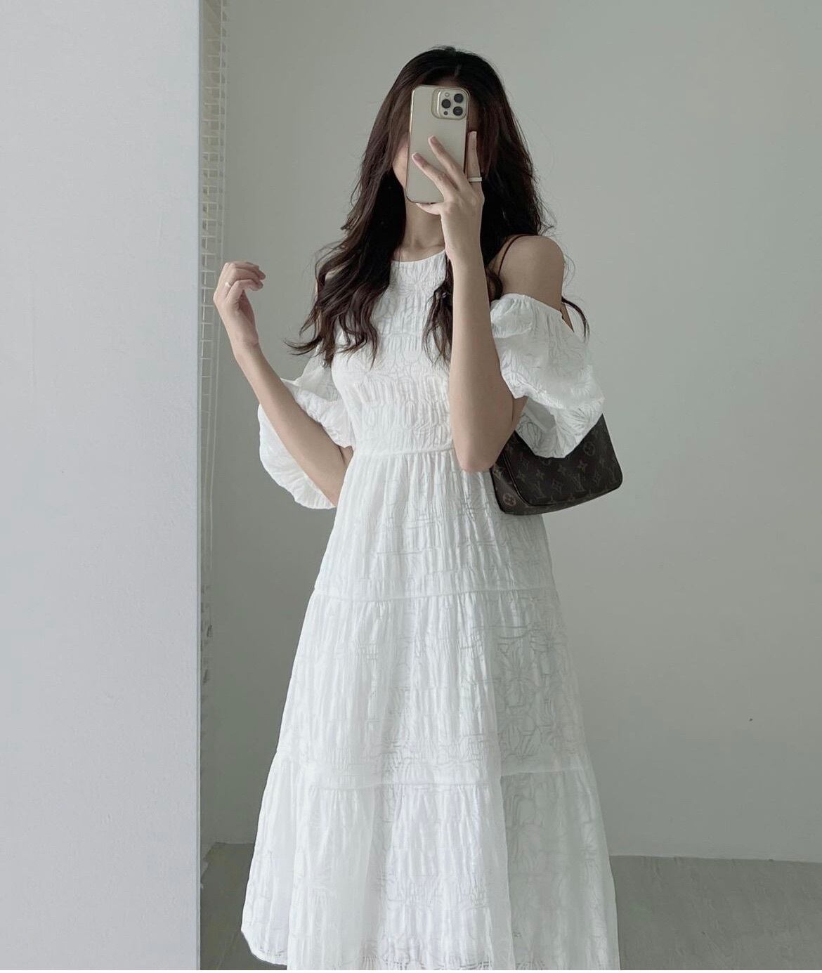 サマーラウンドネックプリーツルーズスリーブドレス 夏物 Oネック 7/20 mi4657749405490