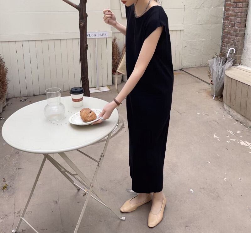 サマースタイルラウンドネックバックルーズカジュアルノースリーブドレス レディース 夏物 Oネック 7/20 mi4669776034545