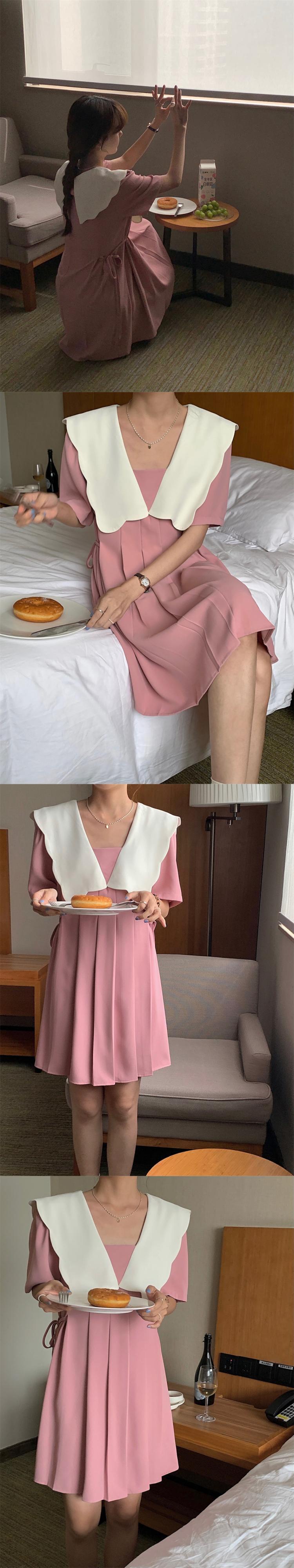 サマーカラーウェストスリーブプリーツドレス 夏物 7/20 mi4681334906231