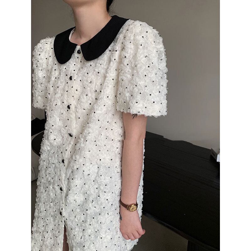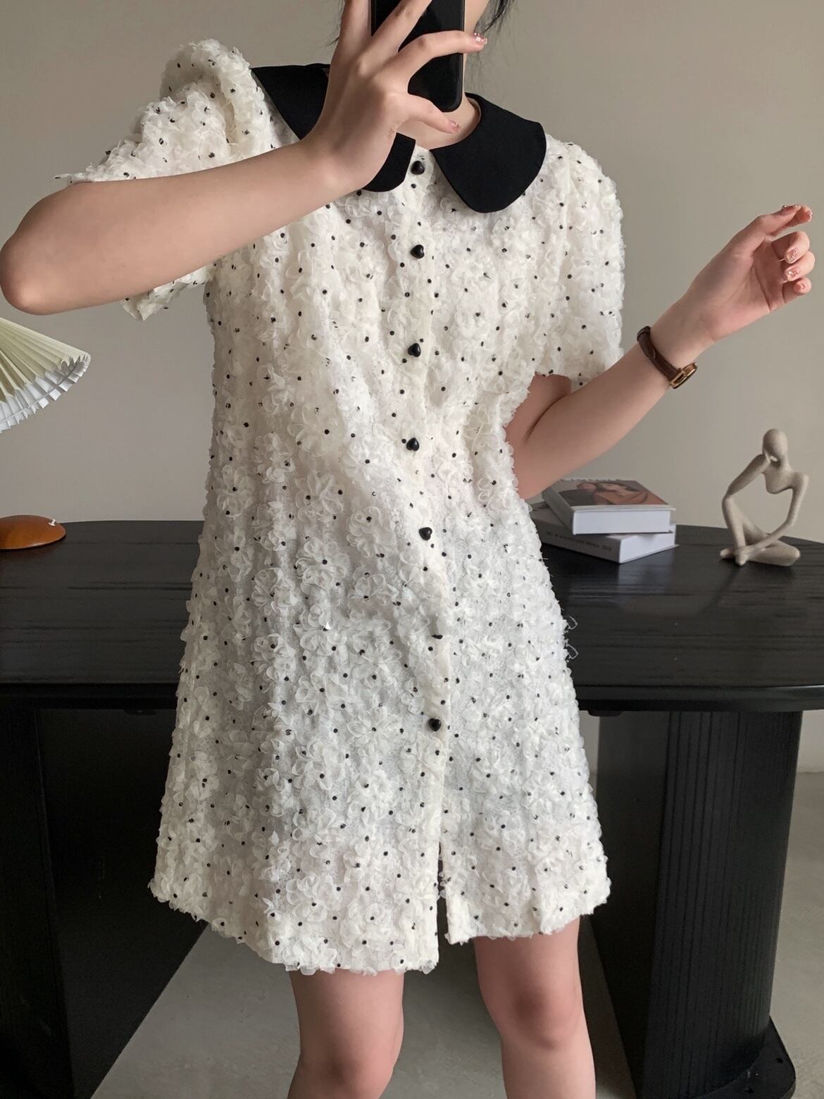 サマーカラーFlowerデザイン スリーブ水玉ドレス 大人ガーリー スウィート キュート カジュアル 夏物 フラワーデザイン 7/20 mi469367729893