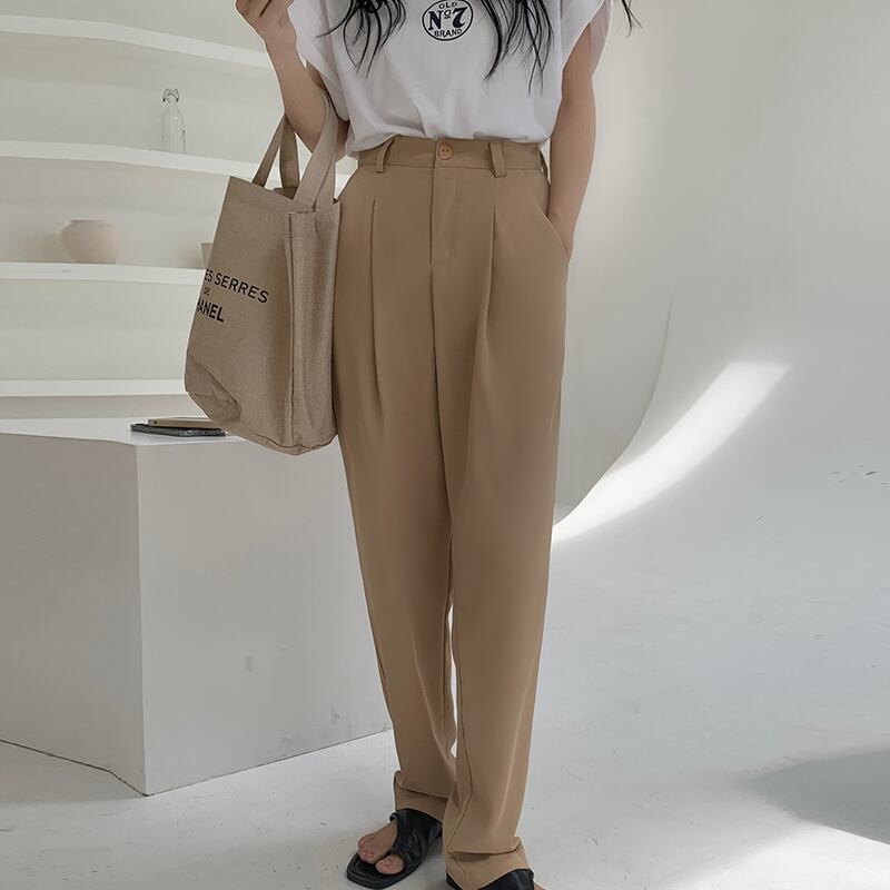 サマーハイウェストウェストプリーツポケットルーズカジュアルワイドレッグ 夏物 ワイドパンツ 7/20 mi4642774338555
