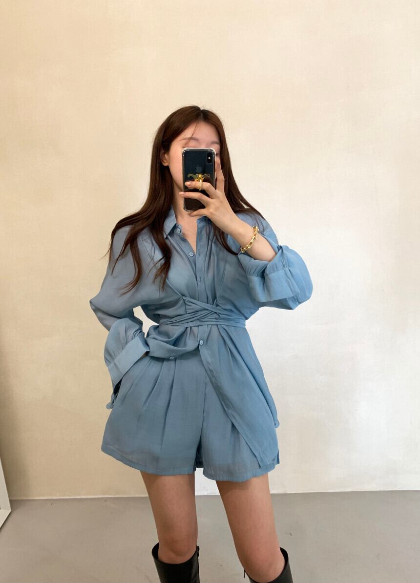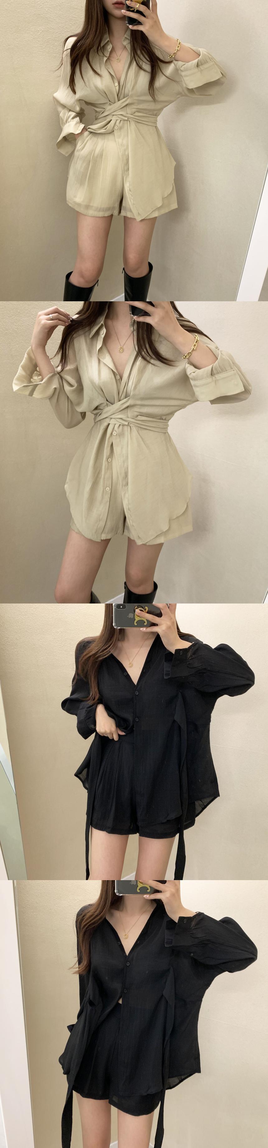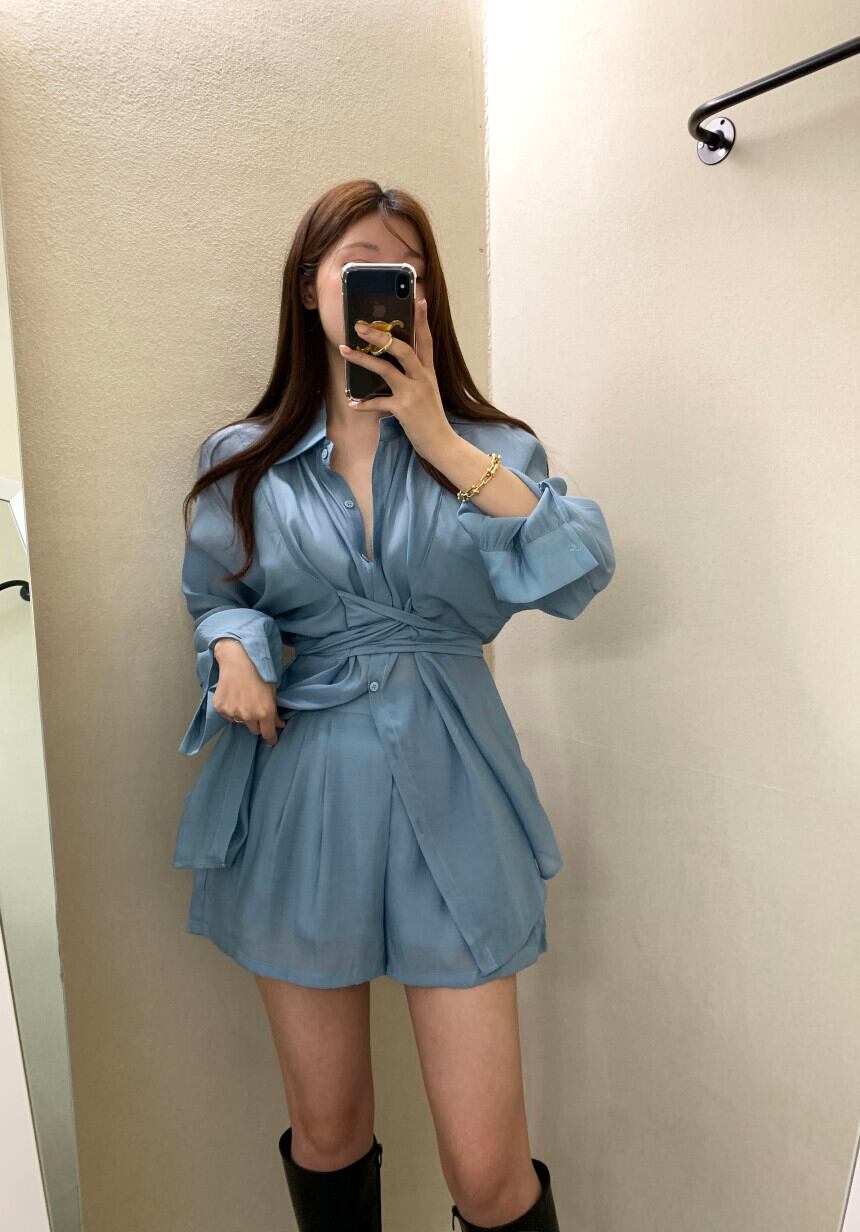 サマーレースシャツ ハイウェストウェストルーズワイドレッグショーツ エレガント 夏物 ブルマー ワイドパンツ 7/20 mi469963042711