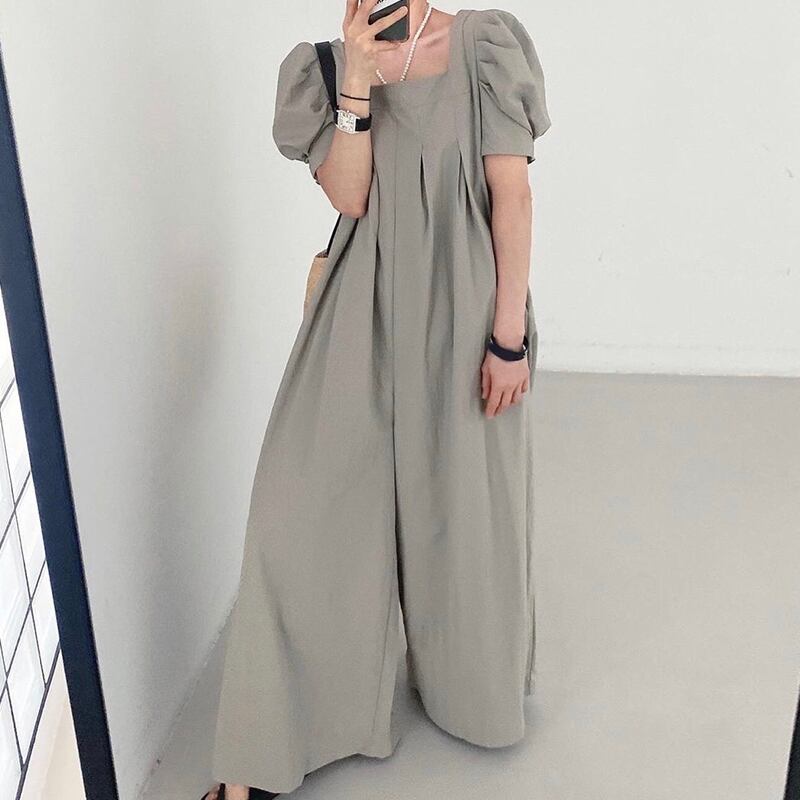 サマーカラープリーツルーズジャンプスーツ オールインワン レディース 大人ガーリー スウィート キュート カジュアル 夏物 スクウェア 7/20 mi4667087987526