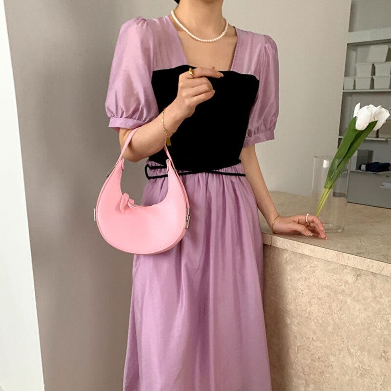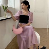 サマースタンダードカラーウェスト薄手スリーブドレス レトロ 夏物 スクウェア ステッチ 7/20 mi4664028819677