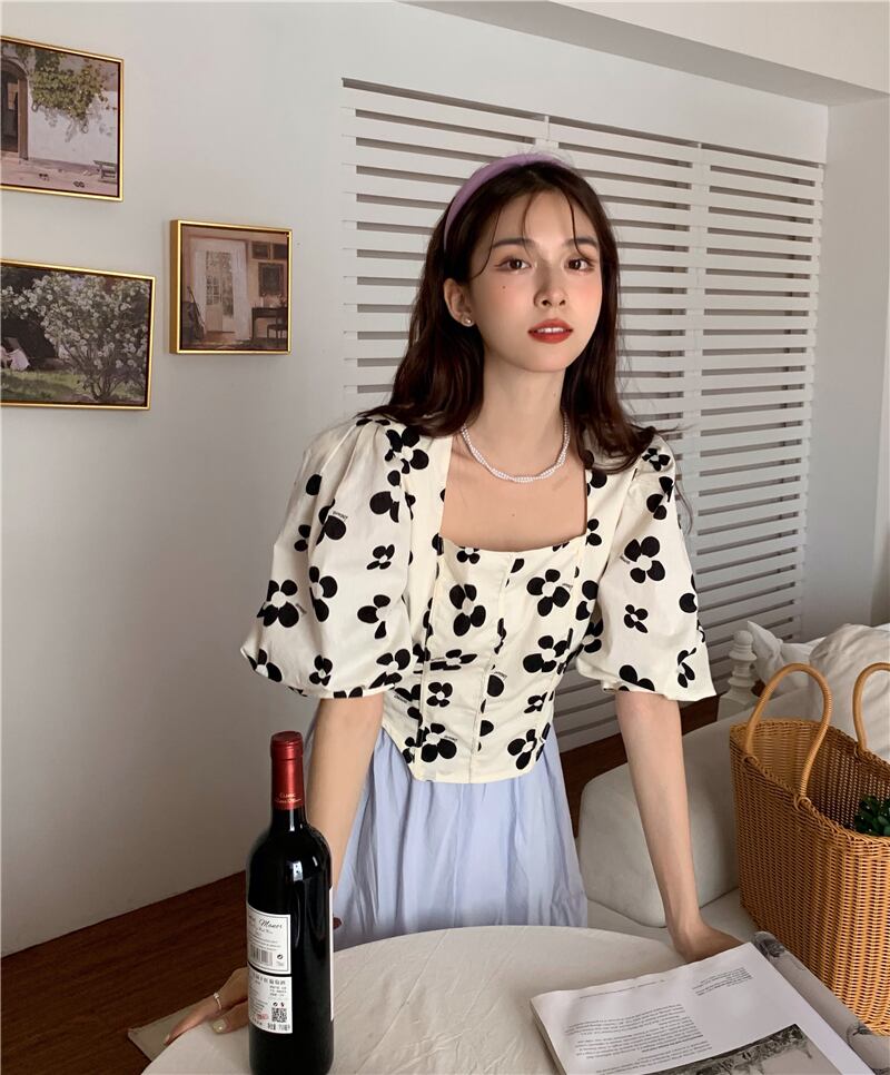 サマーカラースリムフィットFlowerデザイン プリント柄スリーブショートシャツ 夏物 フラワーデザイン スクウェア 7/20 mi4688648338867