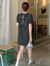 サマースタイルラウンドネックバックリボンスリーブプリントドレス 夏物 Oネック 7/20 mi4623563783169