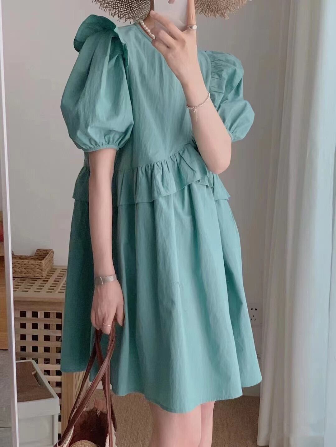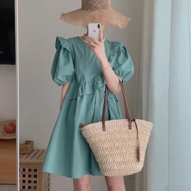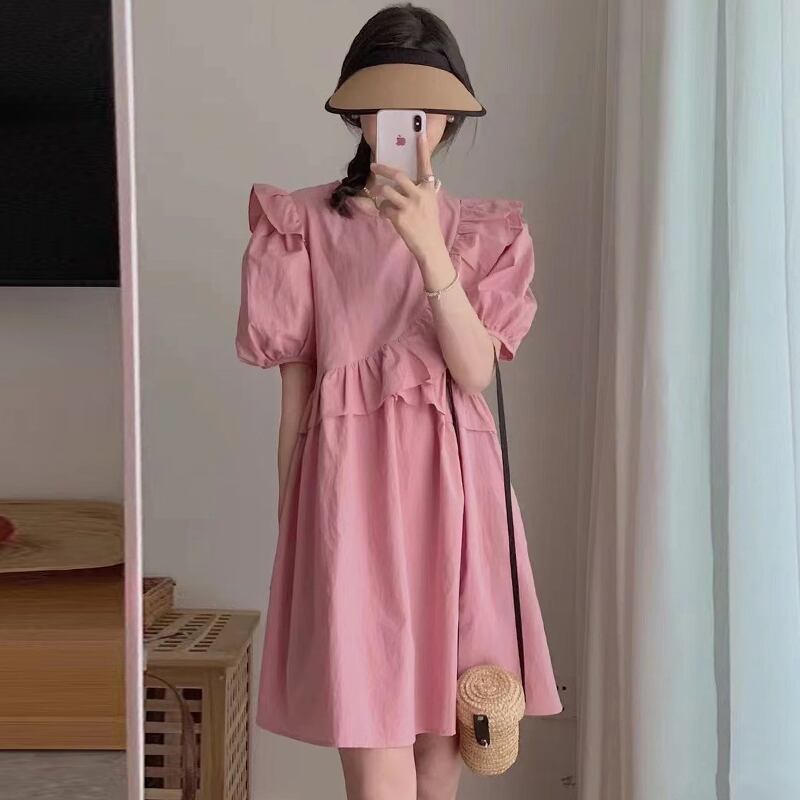 サマーラウンドネックスリーブドレス 夏物 Oネック ステッチ 7/20 mi4676167570081