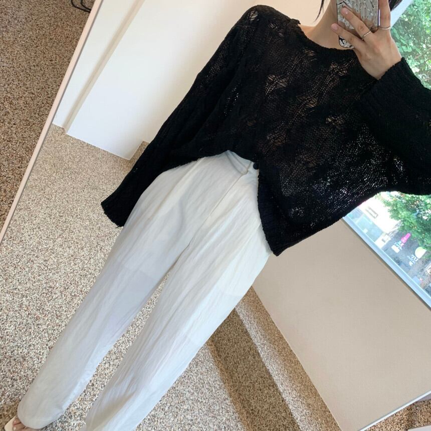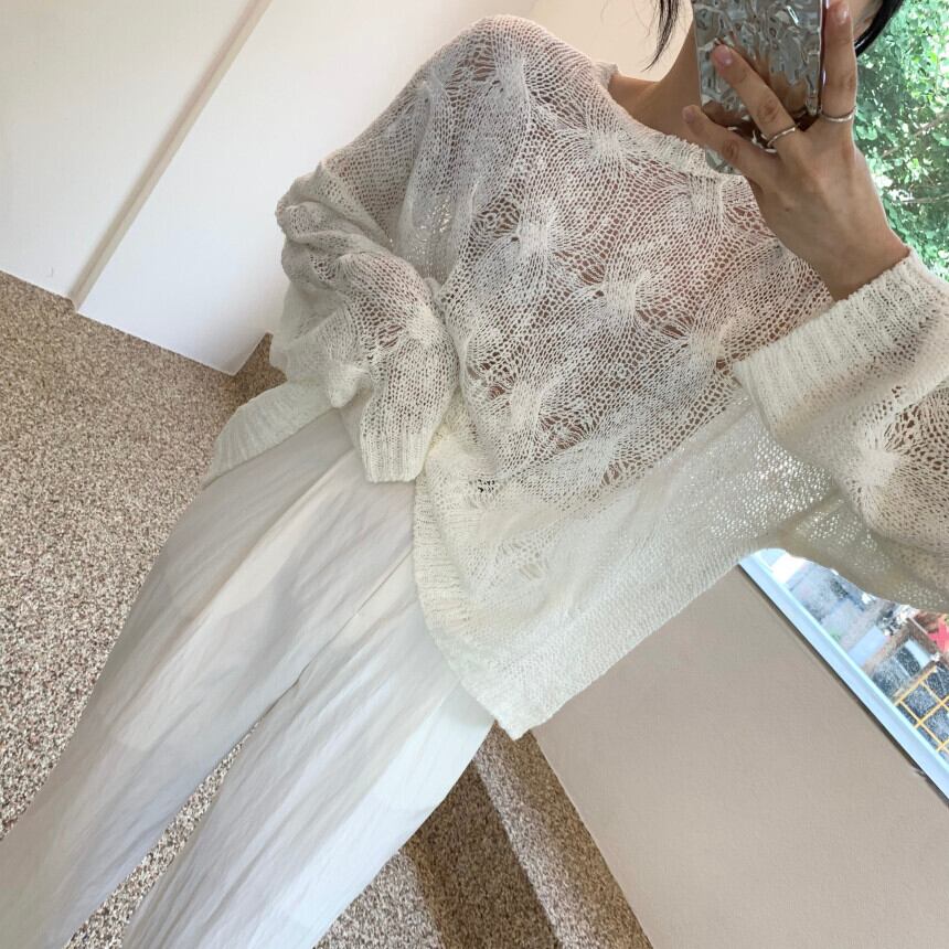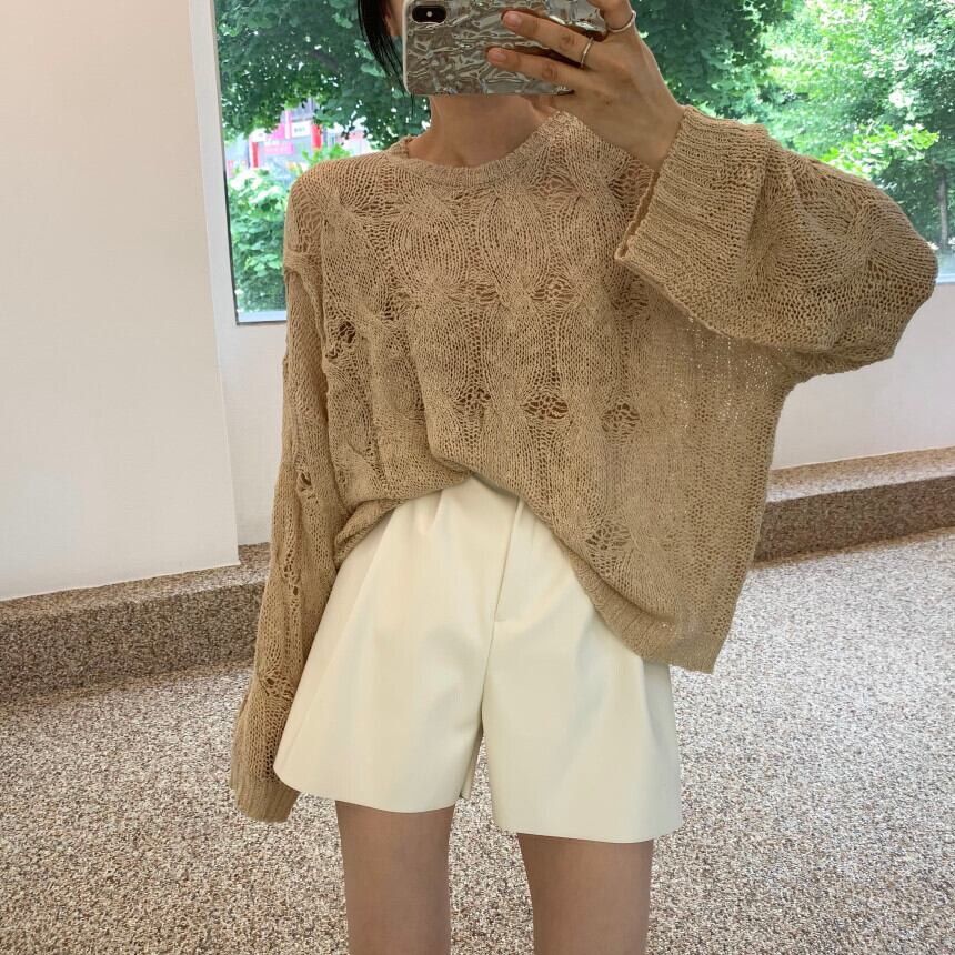 サマースタンダードラウンドネックパターンルーズカジュアルセーター ロング レトロ 夏物 Oネック 7/20 mi4666322654740