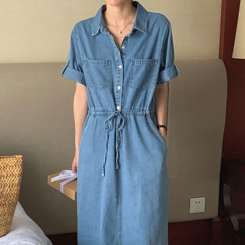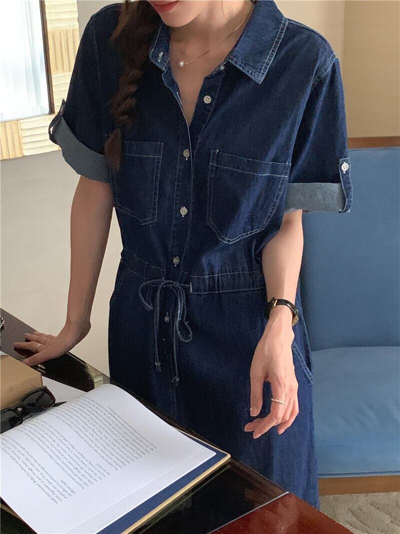 サマースタンダードラインギャザーシャツ ドレス レディース レトロ 夏物 7/20 mi4680668059061