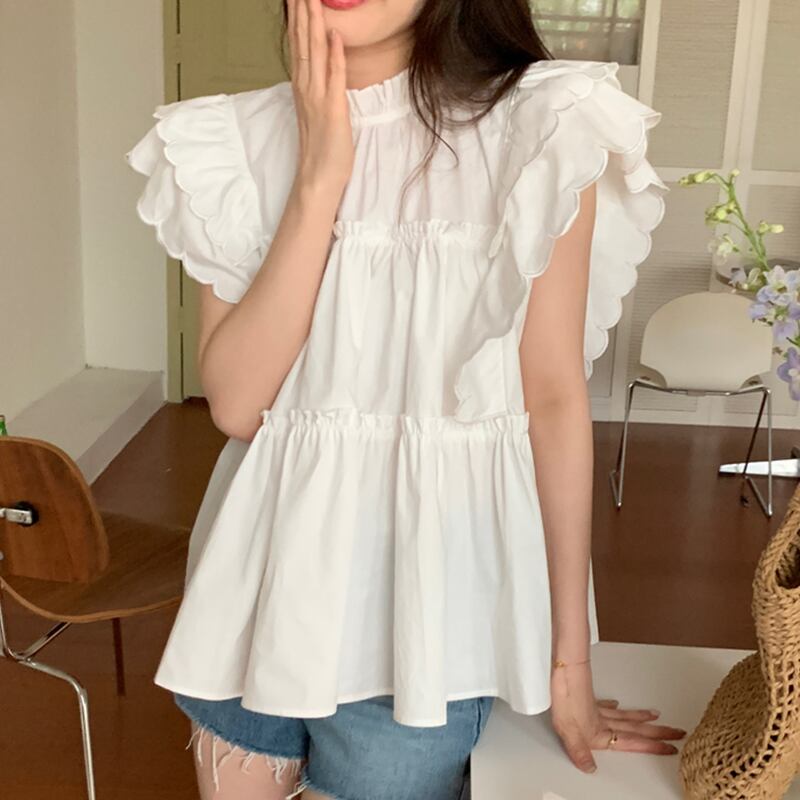 サマーカラールーズレーススリーブシャツ 夏物 ステッチ 7/20 mi4612500767104
