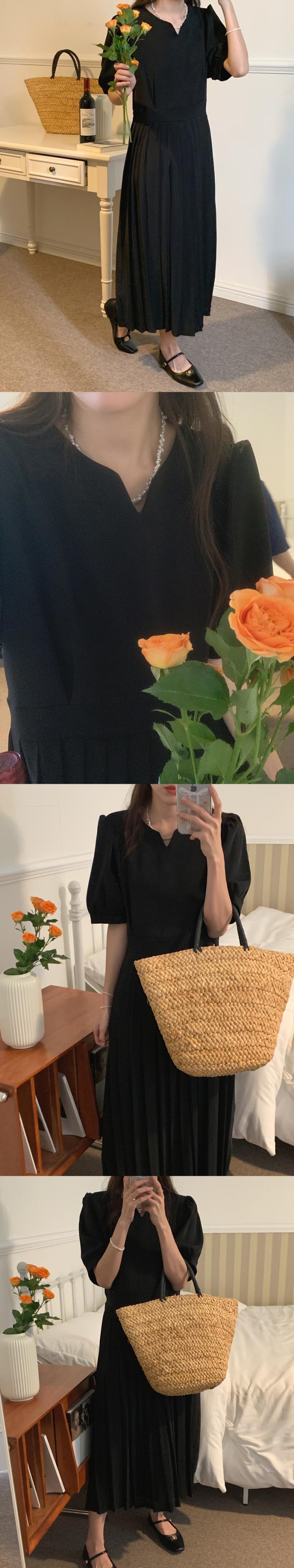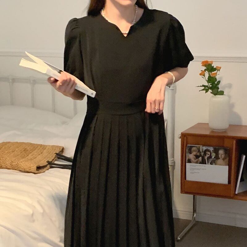 サマーVネックウェスト薄手プリーツドレス ロングスカート レディース 夏物 ステッチ 7/20 mi4679683247269