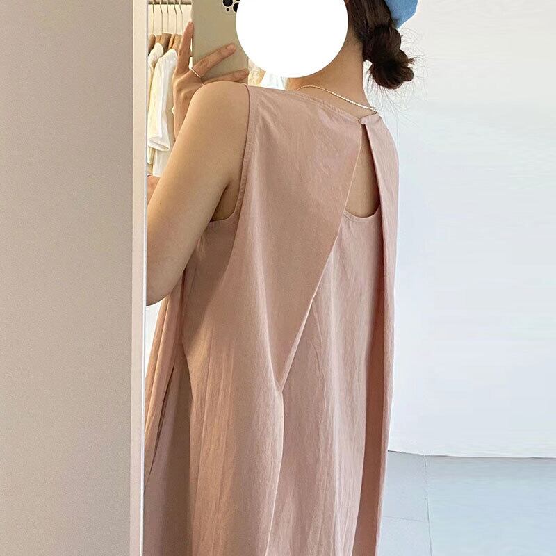 サマーラウンドネックバックルーズカジュアルサイドスリットドレス ピンク 夏物 Oネック 7/20 mi4655293220338
