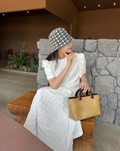 サマーラウンドネック格子柄ルーズカジュアルスリーブドレス ロングスカート 夏物 Oネック 7/20 mi4668481355038