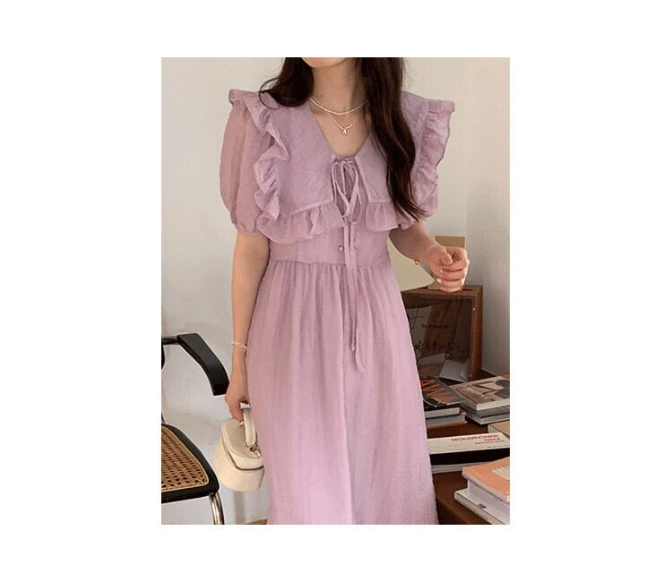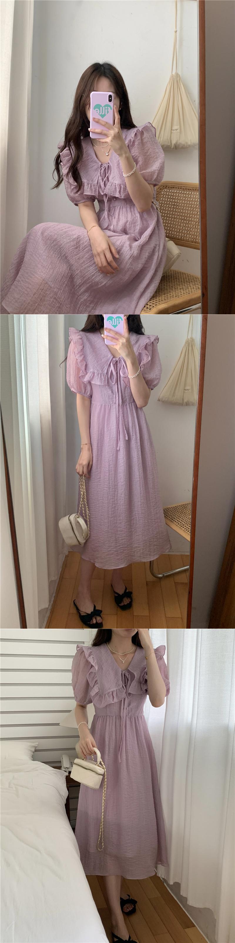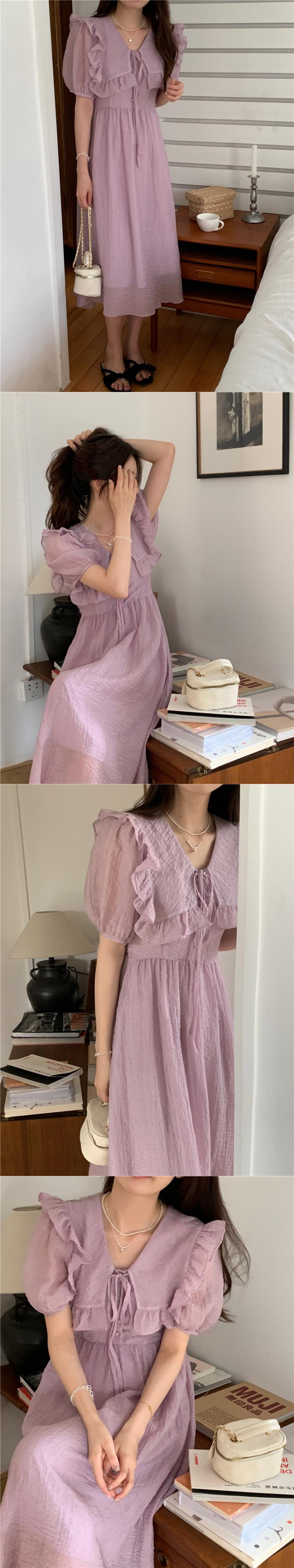 サマーウェストスリムスリーブドレス ロングスカート 夏物 パープル 7/20 mi4654919074221