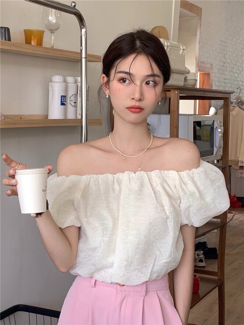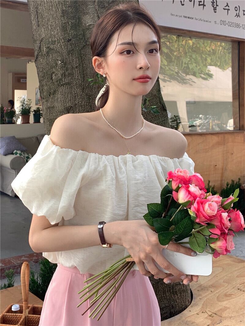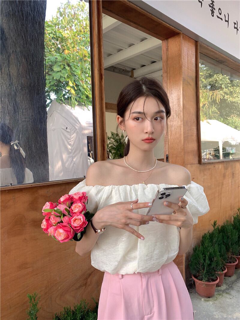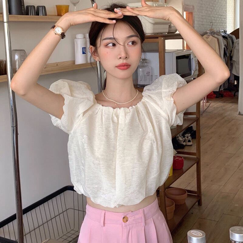 サマーカラーソリッド ルーズカジュアルスリーブショートシャツ トップス 夏物 ソリッドカラー 7/20 mi4694463100024
