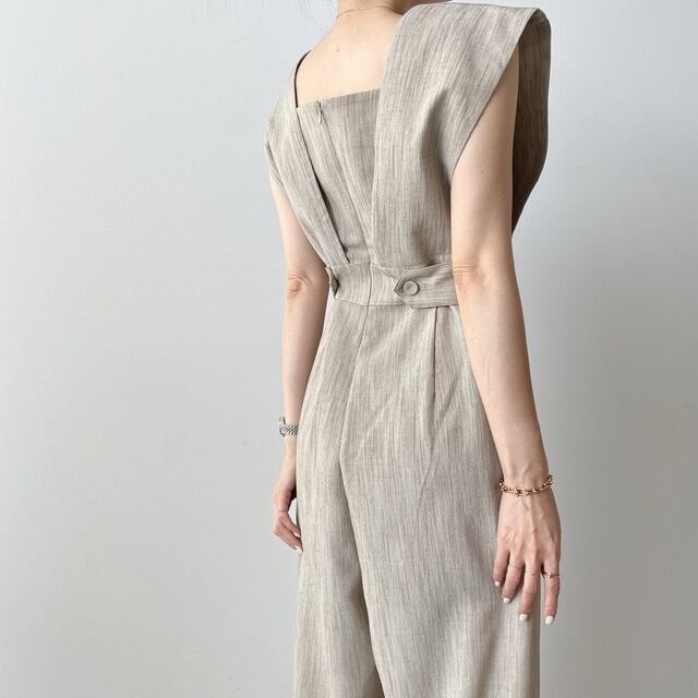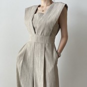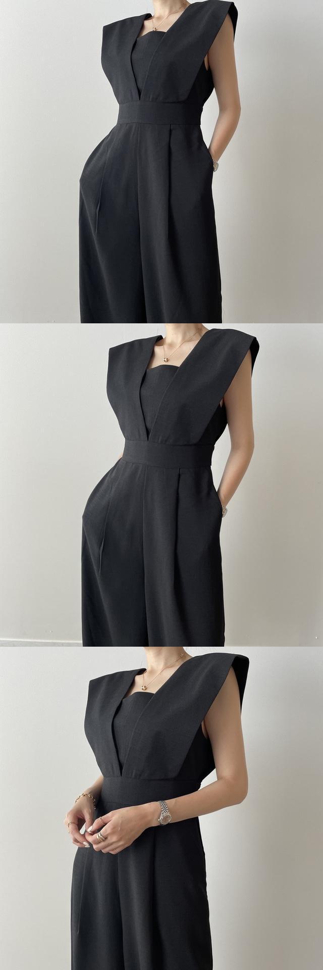 サマースタンダードカラーハイウェストウェストスリムカジュアルノースリーブワイドレッグジャンプスーツ オールインワン レディース レトロ 夏物 ワイドパンツ スクウェア 7/20 mi4636406083736