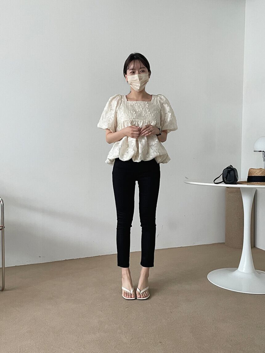 サマーカラーレースFlowerデザイン バックジッパースリーブシャツ レディース ランタンスリーブ エレガント 夏物 フラワーデザイン スクウェア 7/20 mi4679901246931