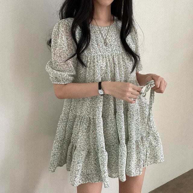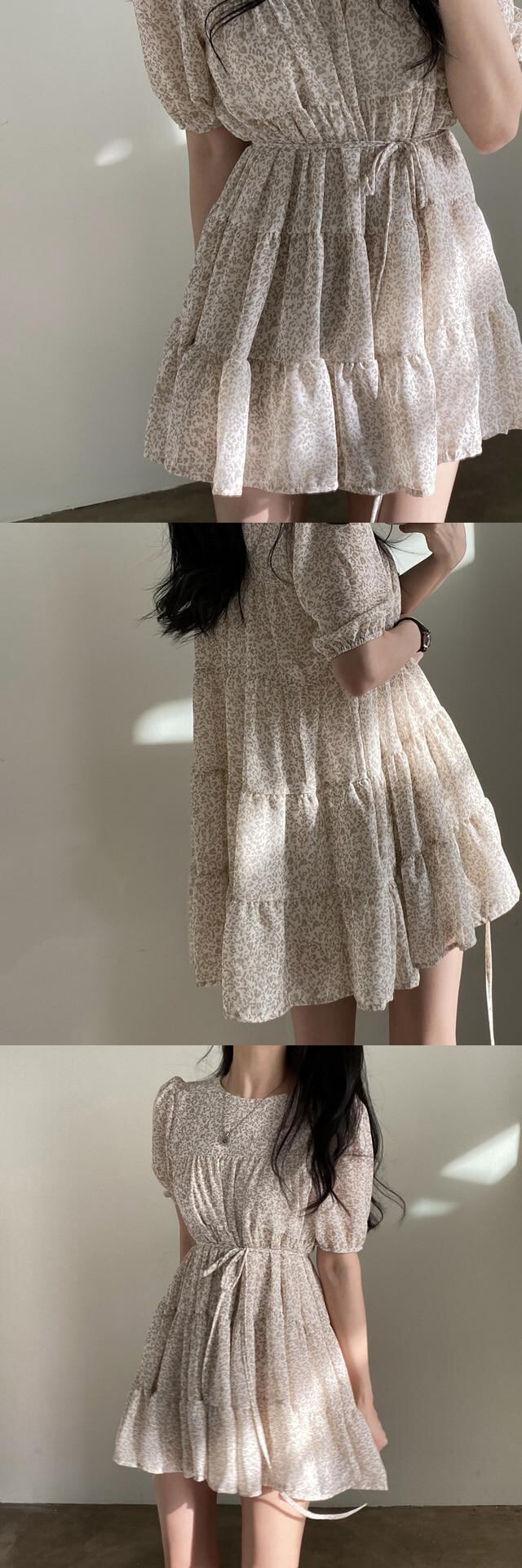 サマーラウンドネックウェストプリーツスリーブレオパードプリント柄ドレス レッド 夏物 Oネック 7/20 mi4682200638600