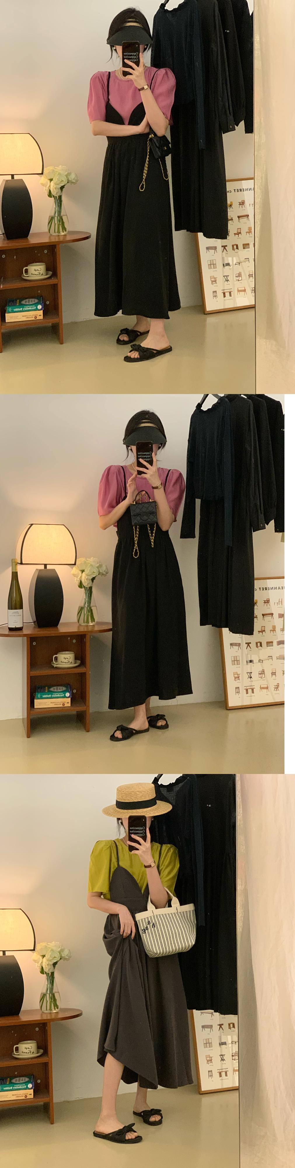 サマーラウンドネックルーズスリーブシャツ Vネックドレス ロングスカート 夏物 Oネック 7/20 mi466923049332
