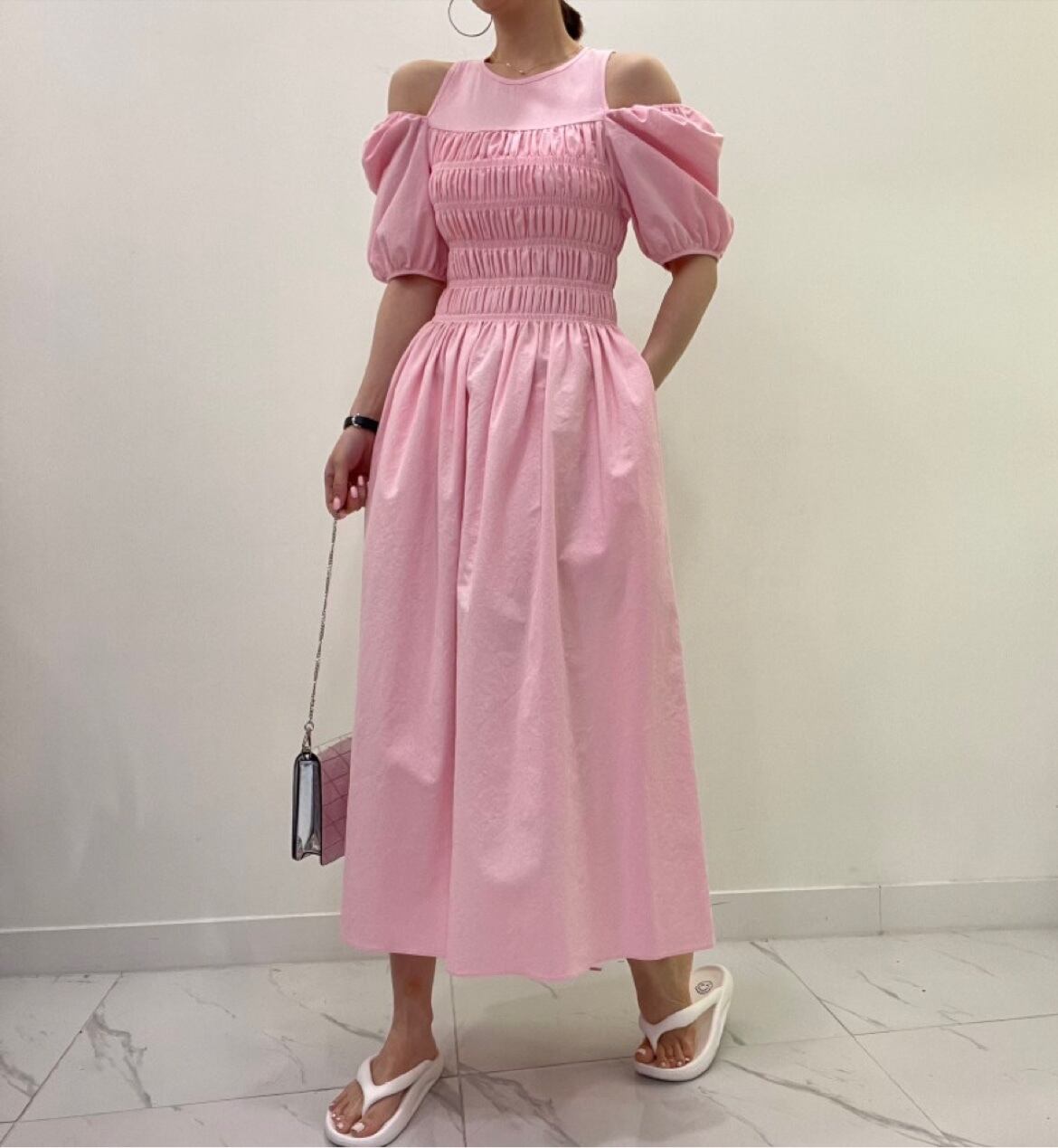 サマーラウンドネックプリーツウェスト薄手スリーブドレス 夏物 Oネック ステッチ 7/20 mi4653816244496