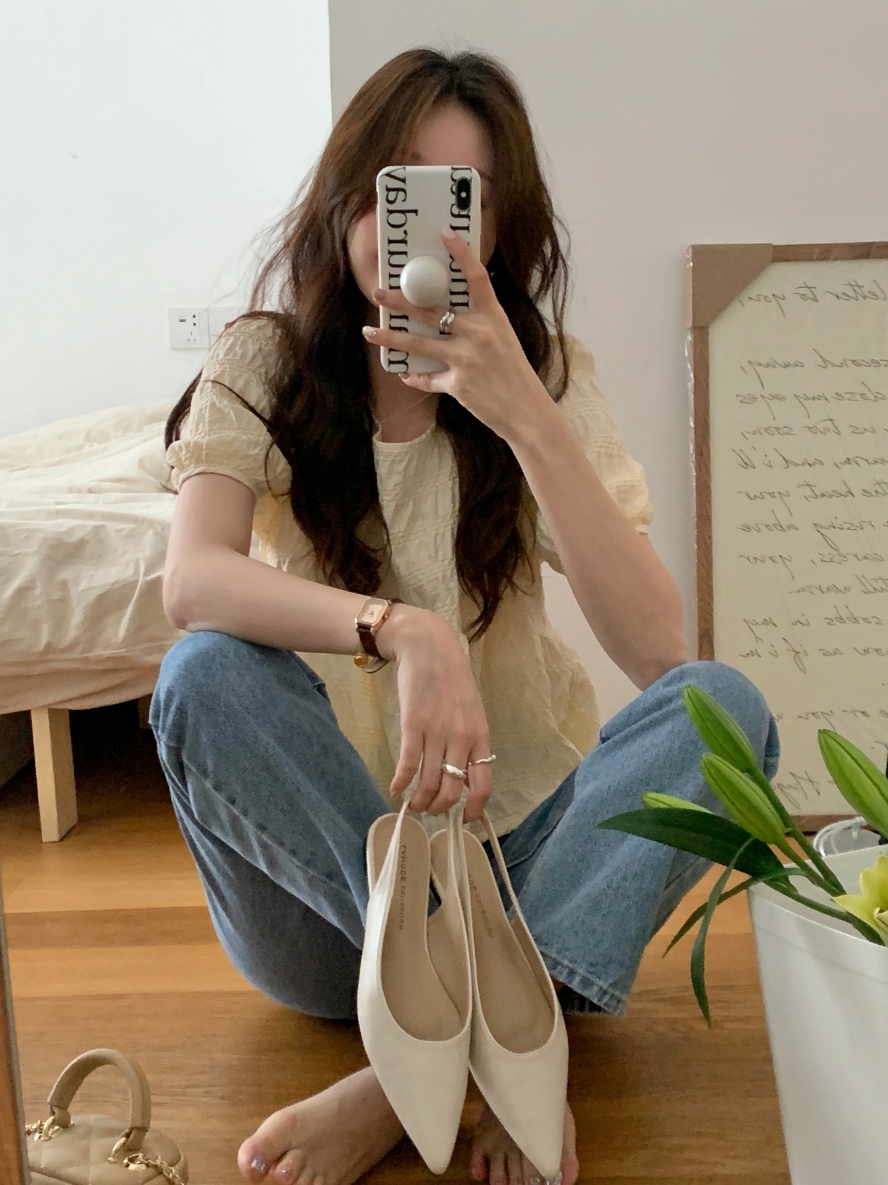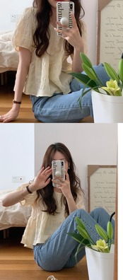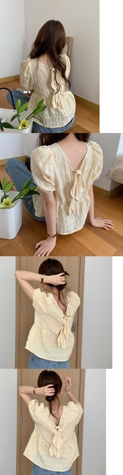 サマーカラーバックリボンプリーツスリーブシャツ トップス レディース 夏物 スクウェア 7/20 mi4628592469665