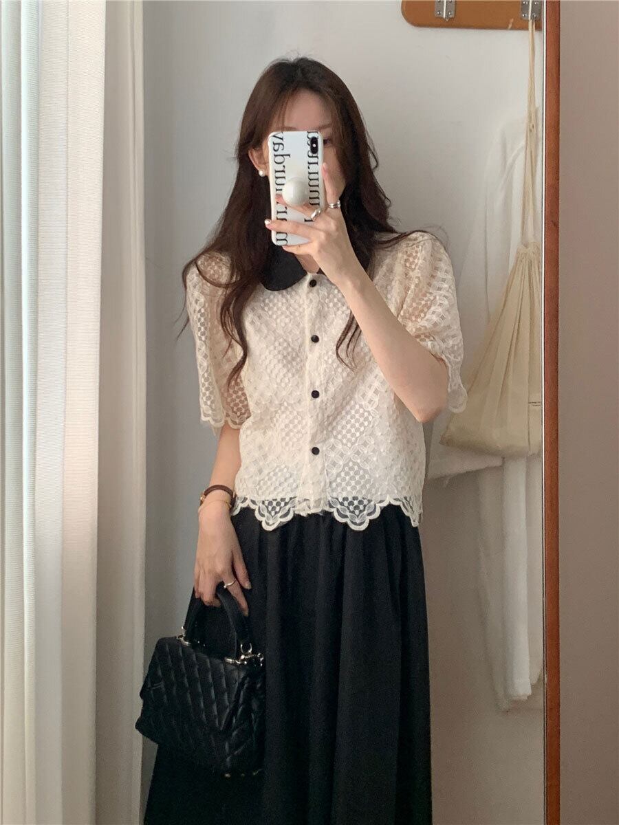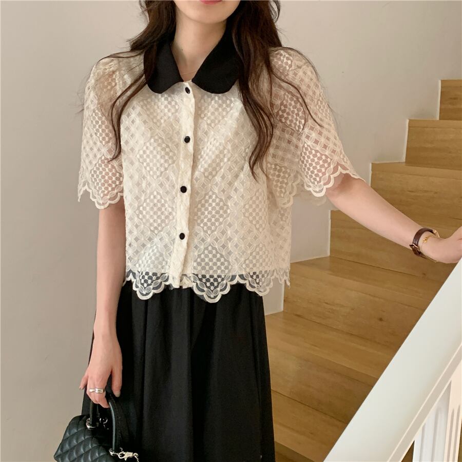 サマーカラーレースFlowerデザイン スリーブシャツ トップス レディース エレガント 夏物 フラワーデザイン 7/20 mi467414749346