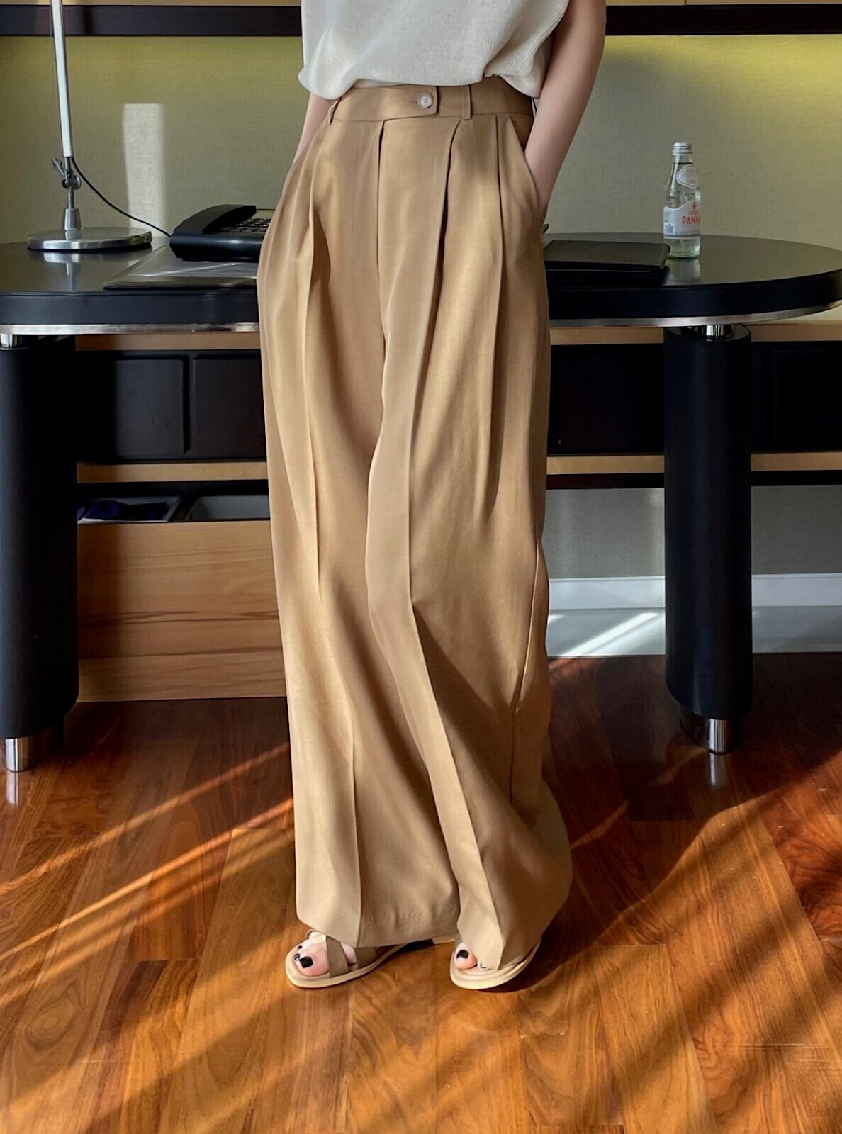 サマーハイウェストウェストボタンポケットルーズカジュアルワイドレッグパンツ レディース 夏物 ワイドパンツ 7/20 mi4696813761149