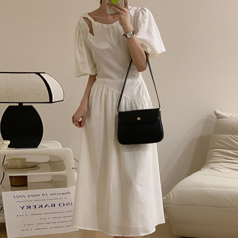 サマーラウンドネックウェストロングスリーブドレス レディース 夏物 Oネック 7/20 mi467881789045