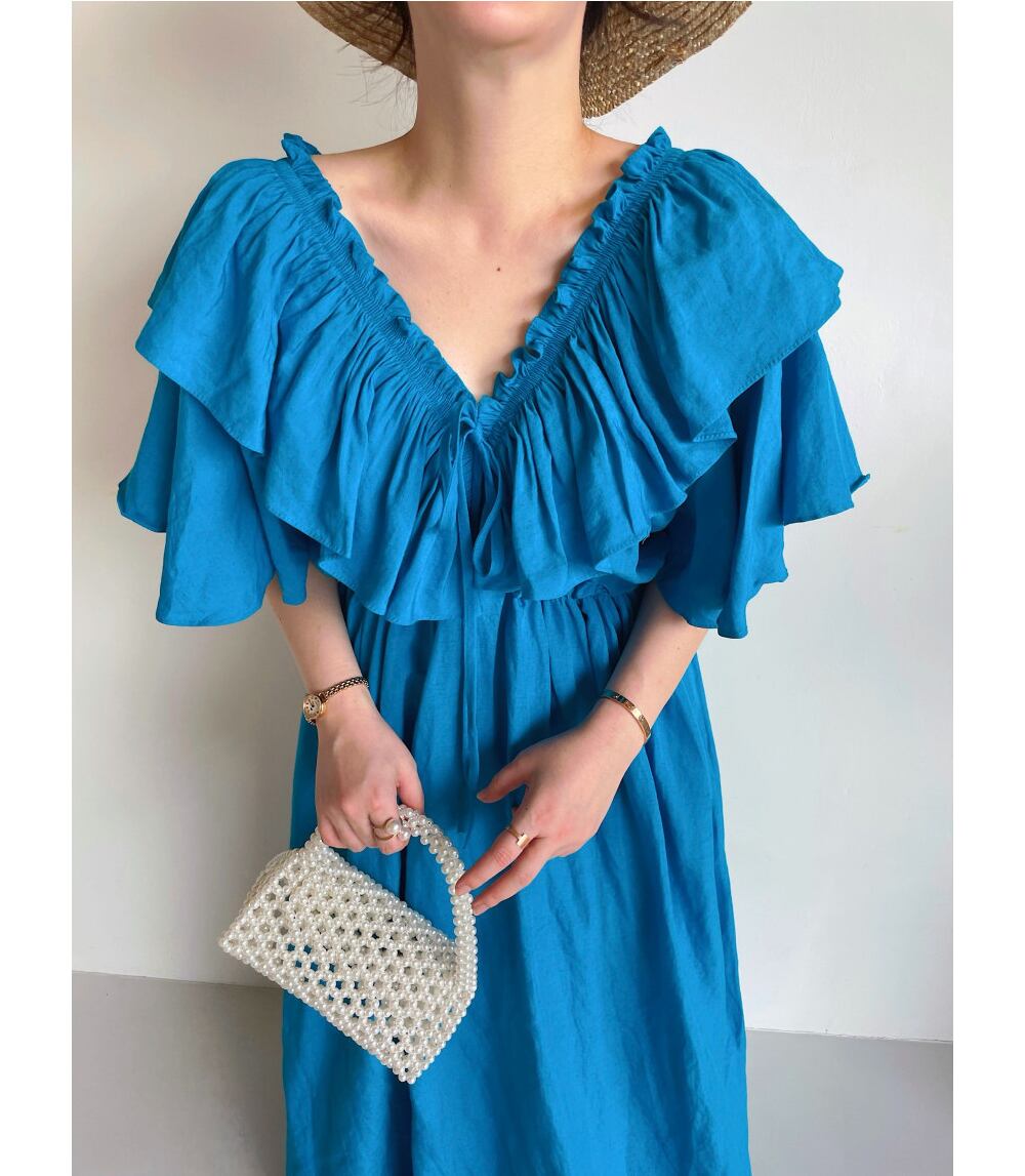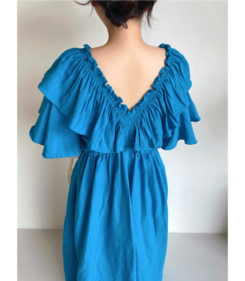 サマースタイルVネックスリーブブルードレス ロングスカート レディース 夏物 7/20 mi4638380547102