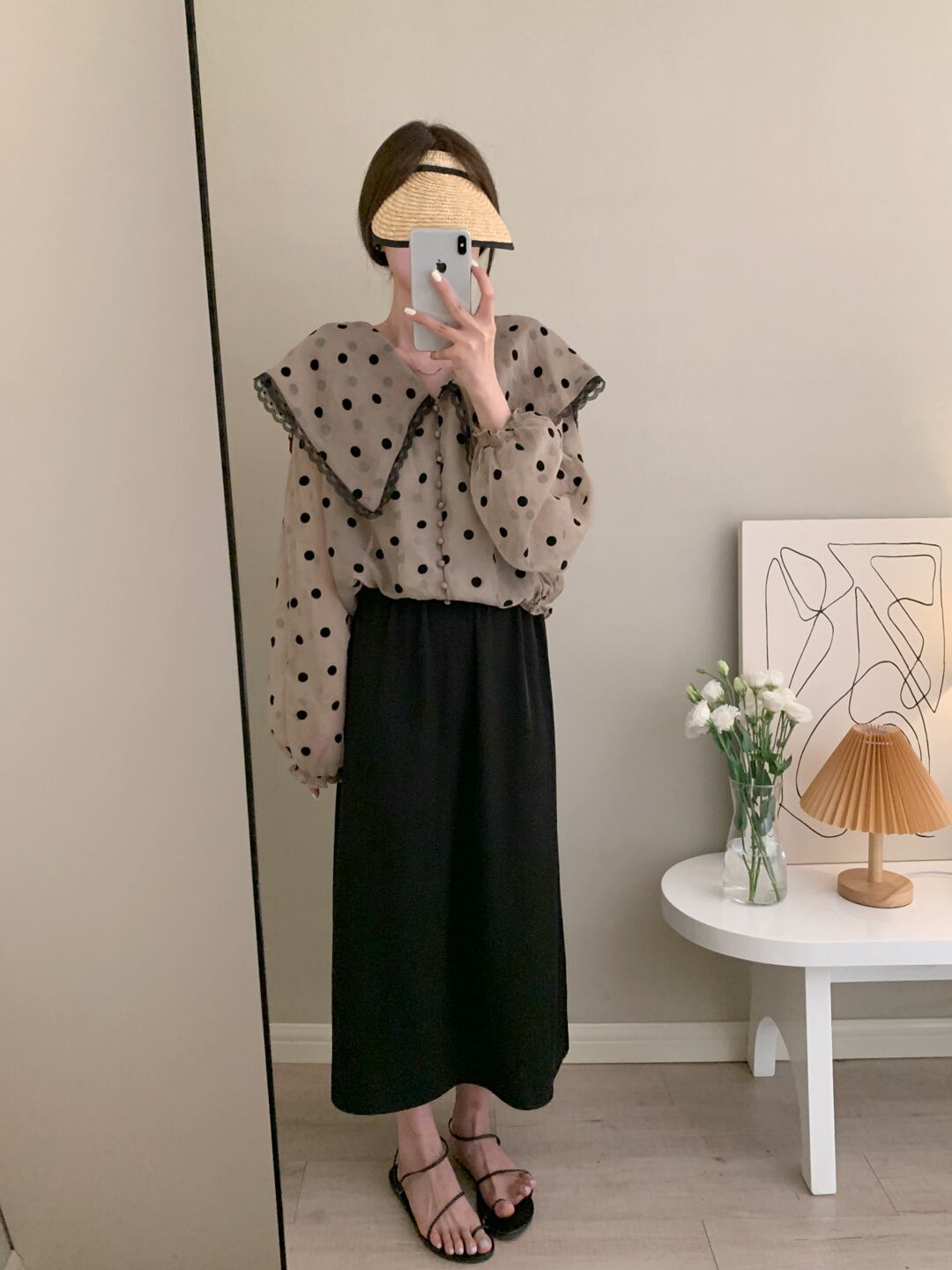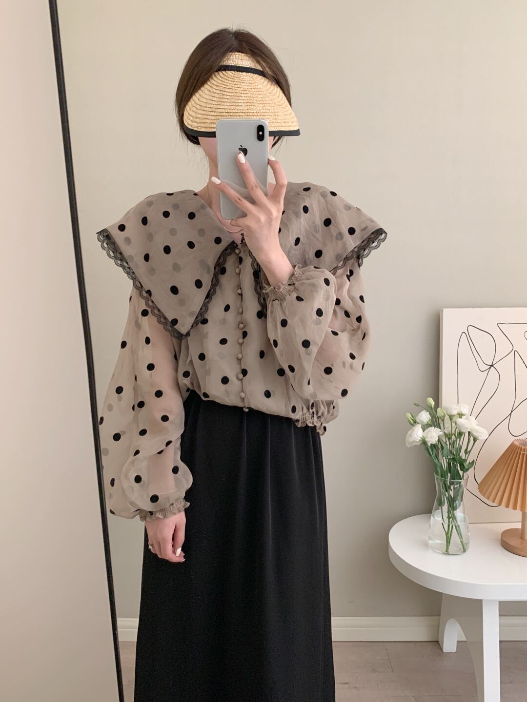 サマースタンダードレース薄手水玉シャツ トップス ロング レトロ 夏物 7/20 mi4610927909833