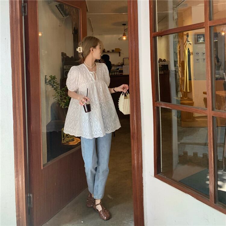 サマーレースVネックシャツ トップス レディース エレガント 夏物 7/20 mi4629241371061