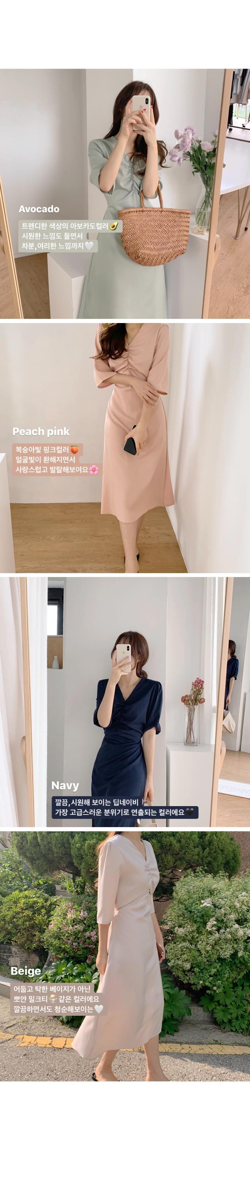 サマーVネックウェスト薄手ソリッド カラードレス 夏物 ソリッドカラー 7/20 mi4678714249790